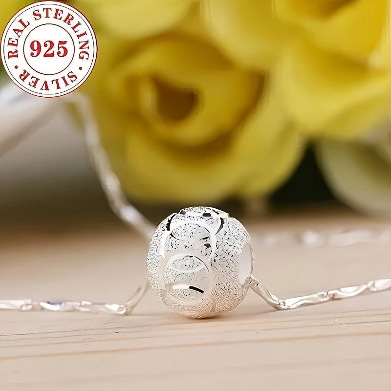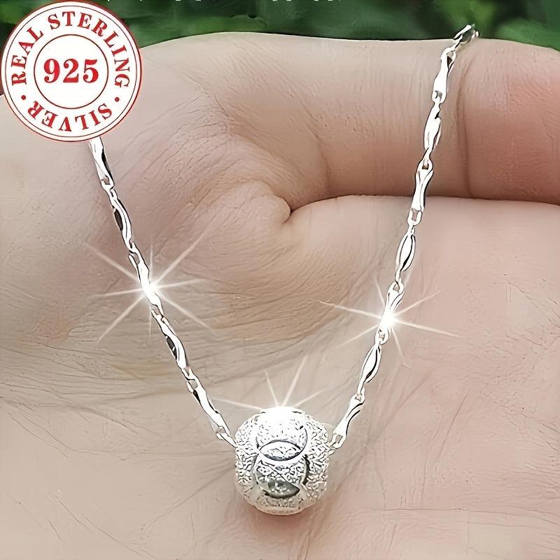 Elevate your casual attire with this stunning 925 silver necklace featuring a lucky bead pendant. The shimmering jewelry adds a touch of elegance to any outfit.