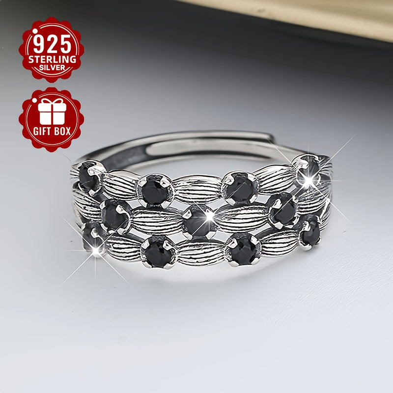 Elegant 925 silver ring set features a retro crown design with synthetic Zirconia stones, perfect for a hip hop style look.