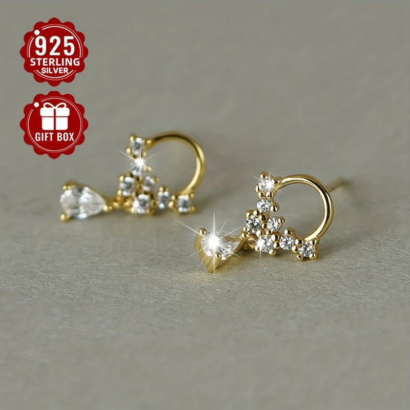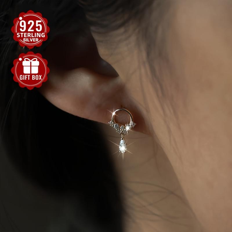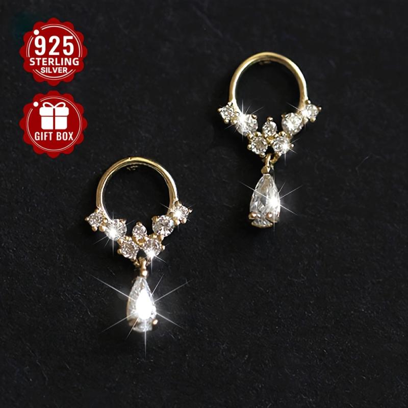 Add elegance to your look with these 925 pure silver water drop ear studs featuring micro set synthetic Zirconia. Lightweight and comfortable to wear.