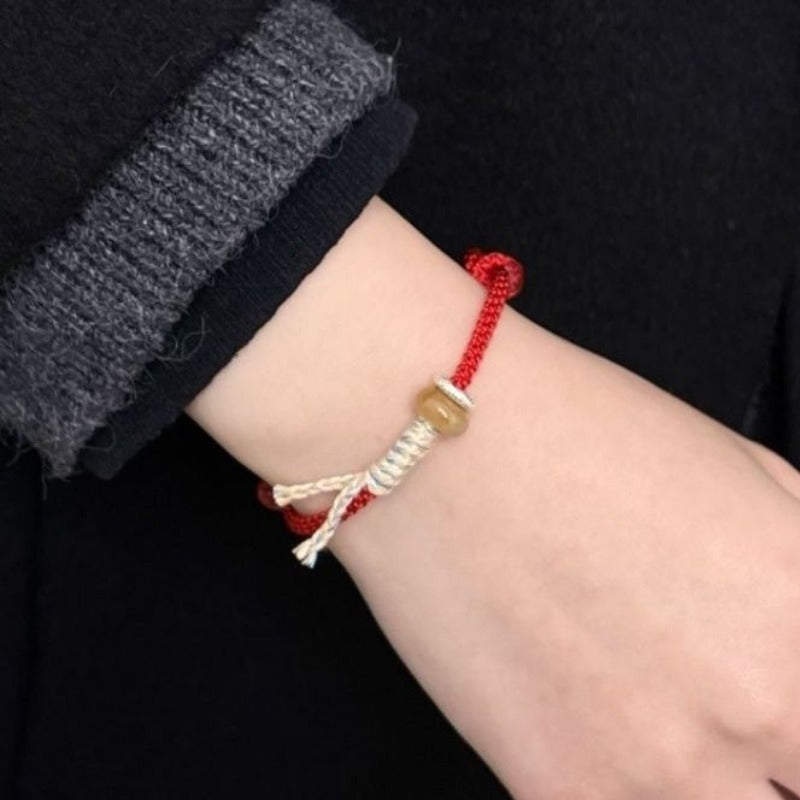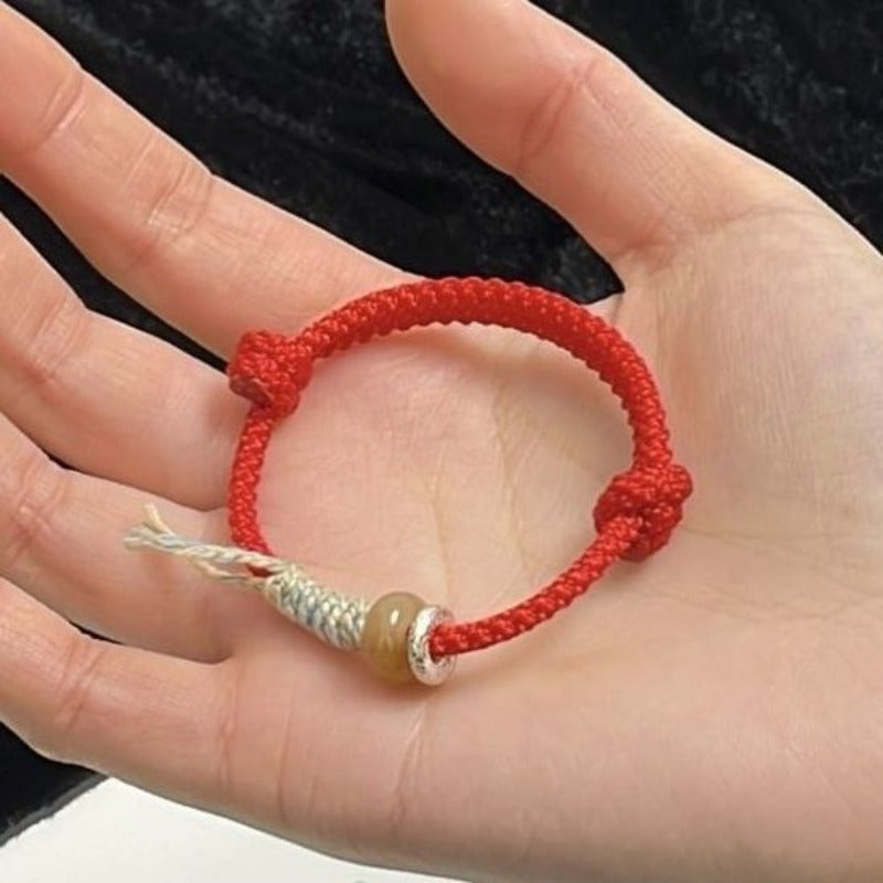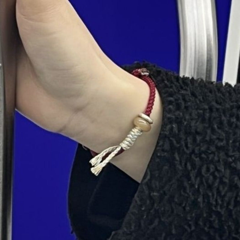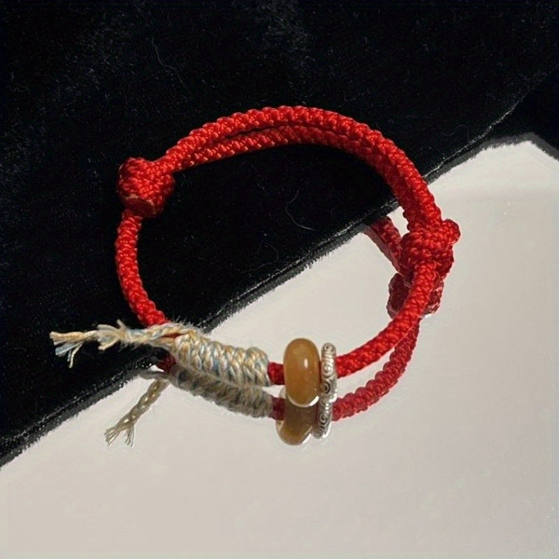 Stylish red rope bracelet with a peace charm, perfect for everyday or party wear. This braided wristband is adjustable for men and women.