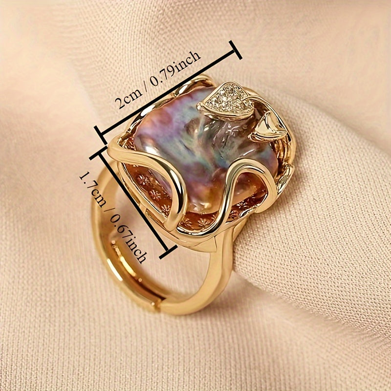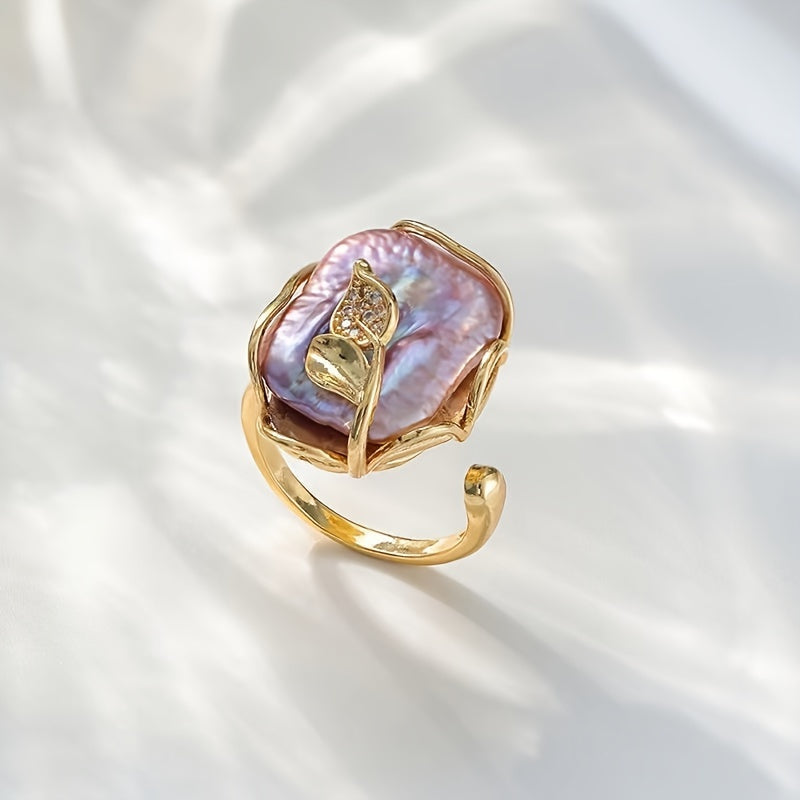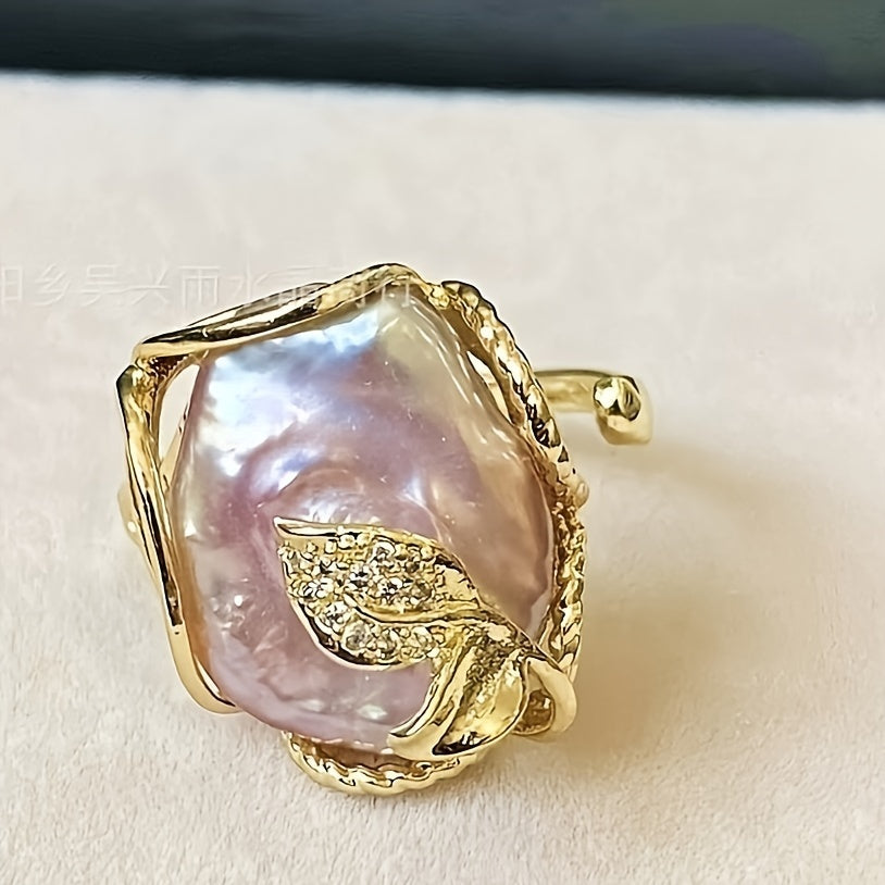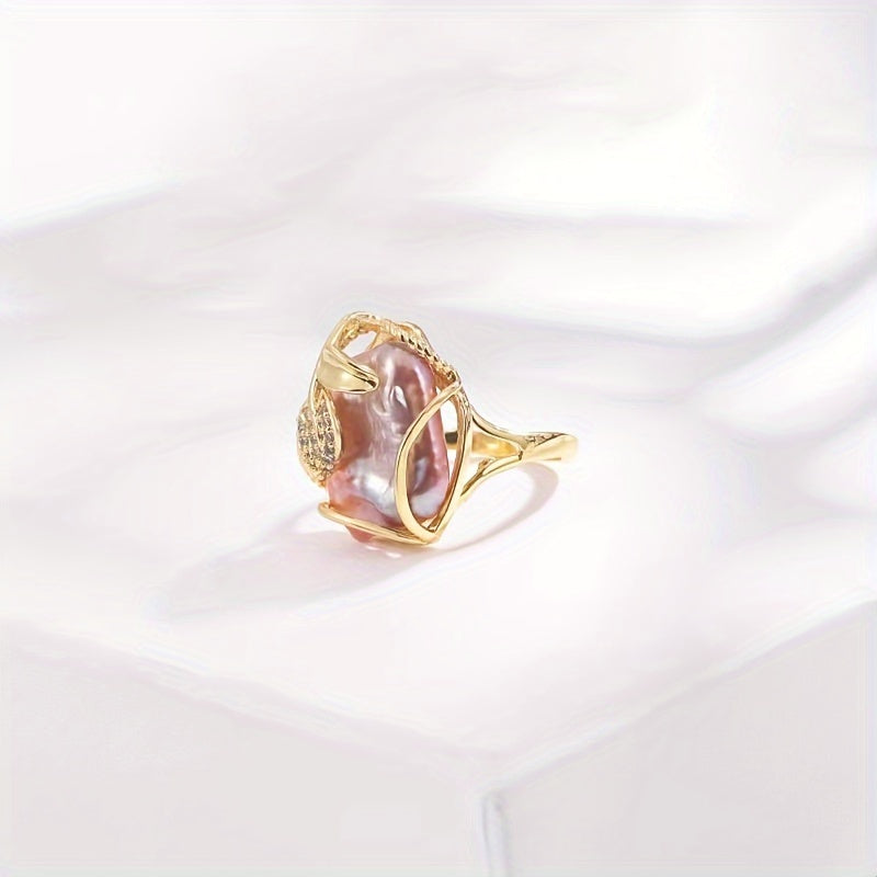 This stunning ring features a baroque freshwater pearl set in 14K gold plating. It is perfect for daily wear or special occasions like parties.