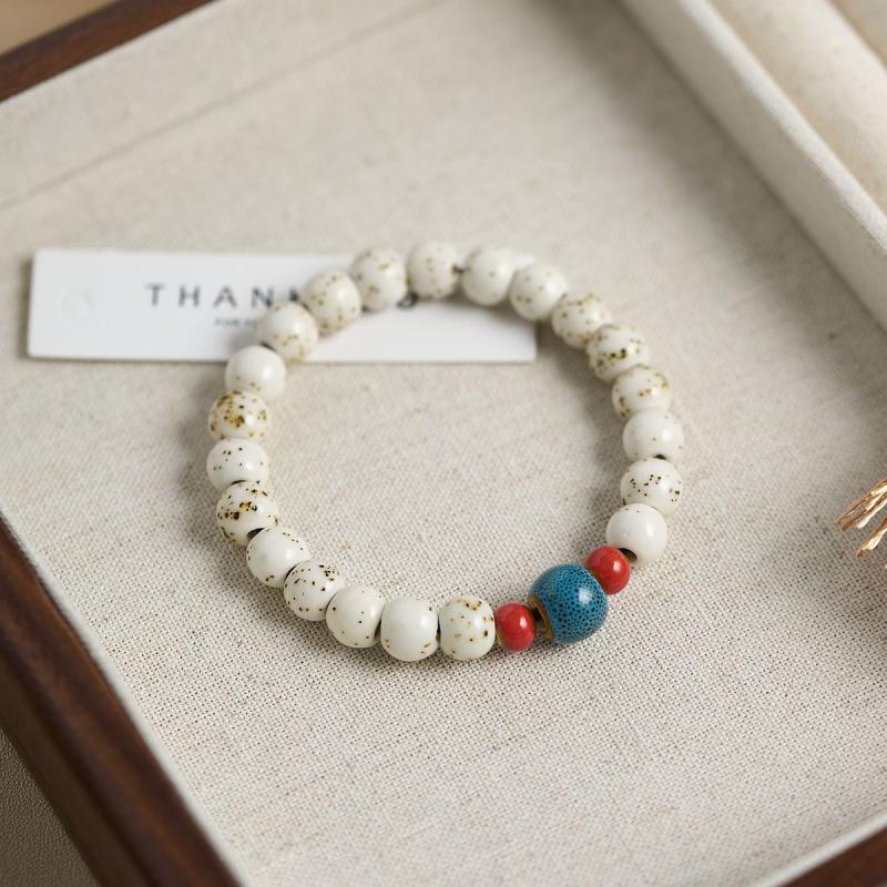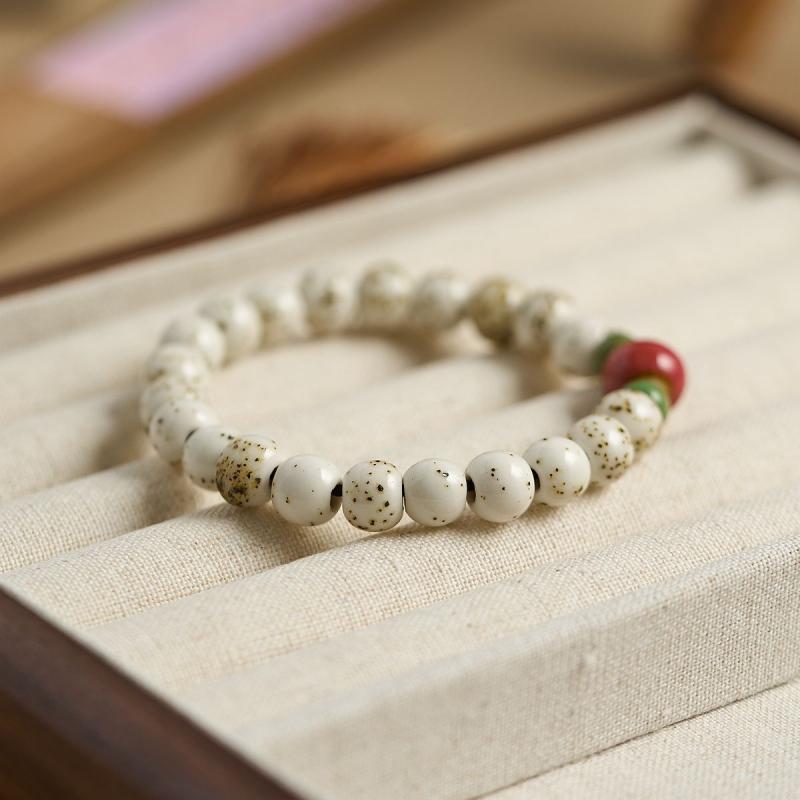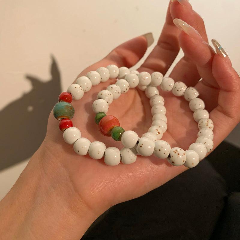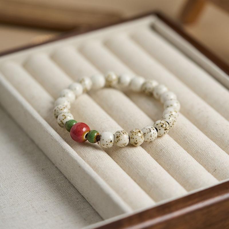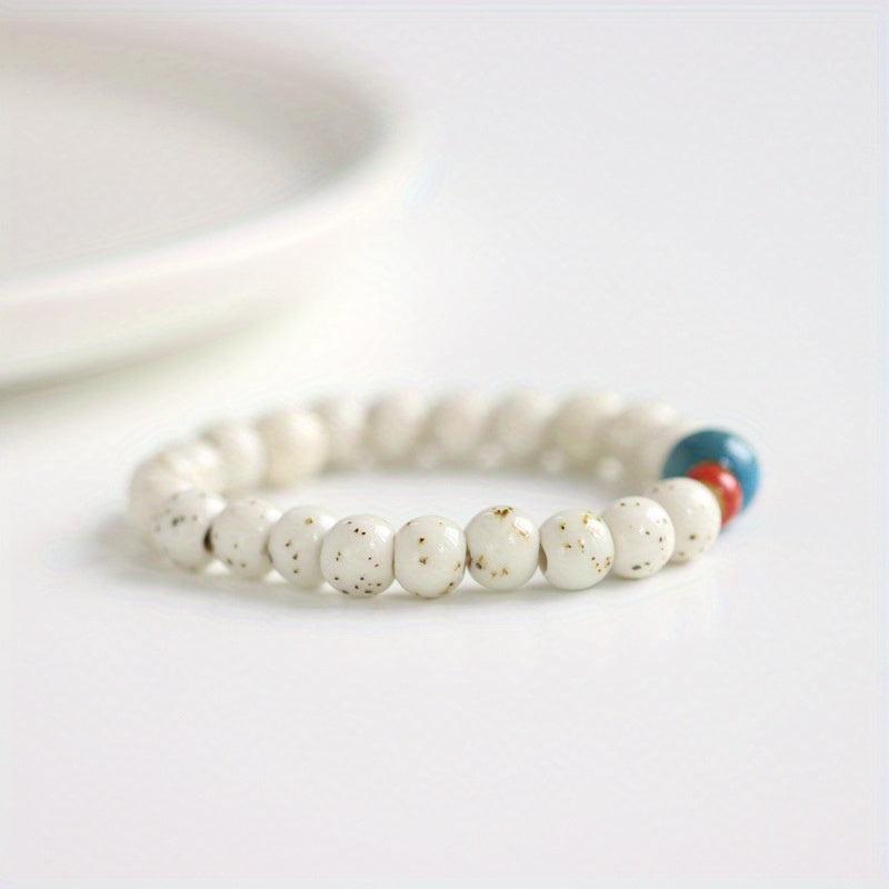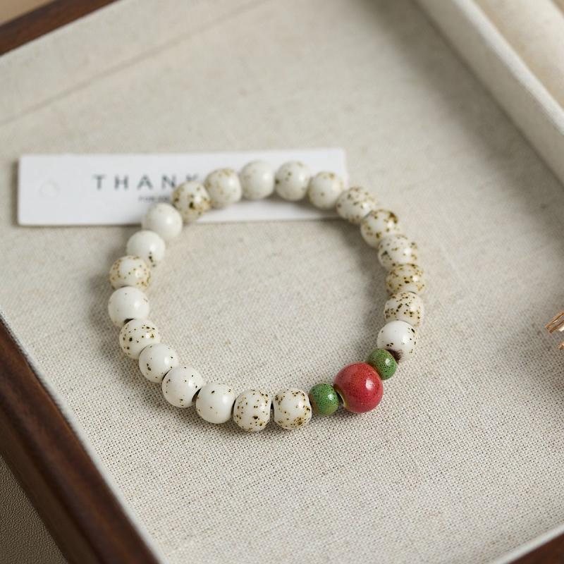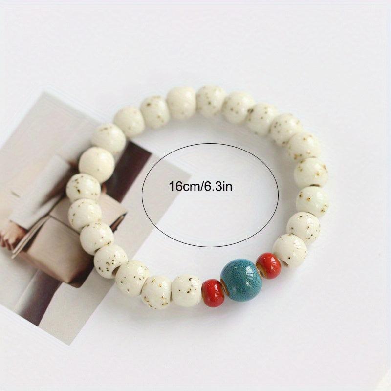 Add a touch of bohemian charm to your outfit with this ceramic beaded bracelet. Featuring colorful dots and an adjustable stretchy design, it's perfect for everyday wear or special occasions. Makes a great gift for any nature lover.