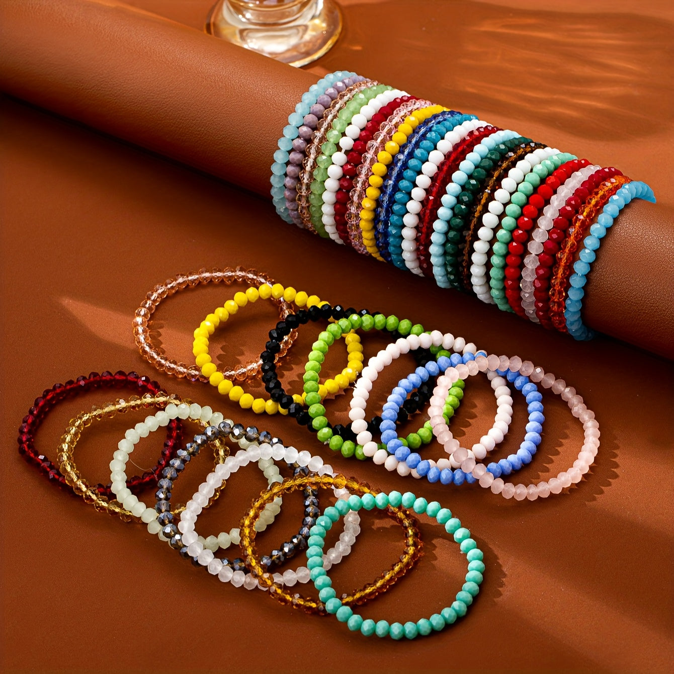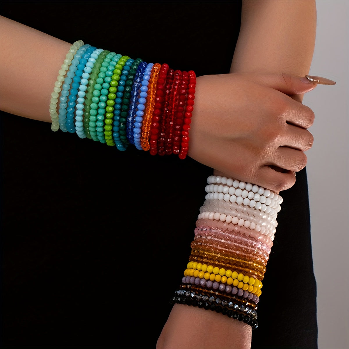 Beautiful set of 36 stackable stretch bracelets featuring Bohemian glass beads. Perfect for adding a touch of Boho charm to any outfit. Includes August birthstone themed beads.