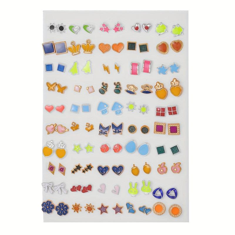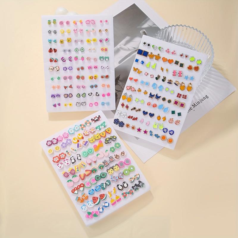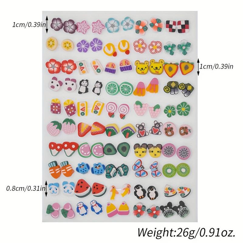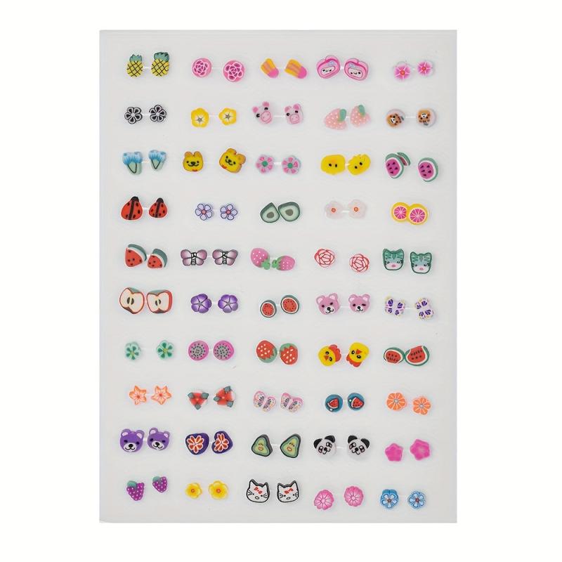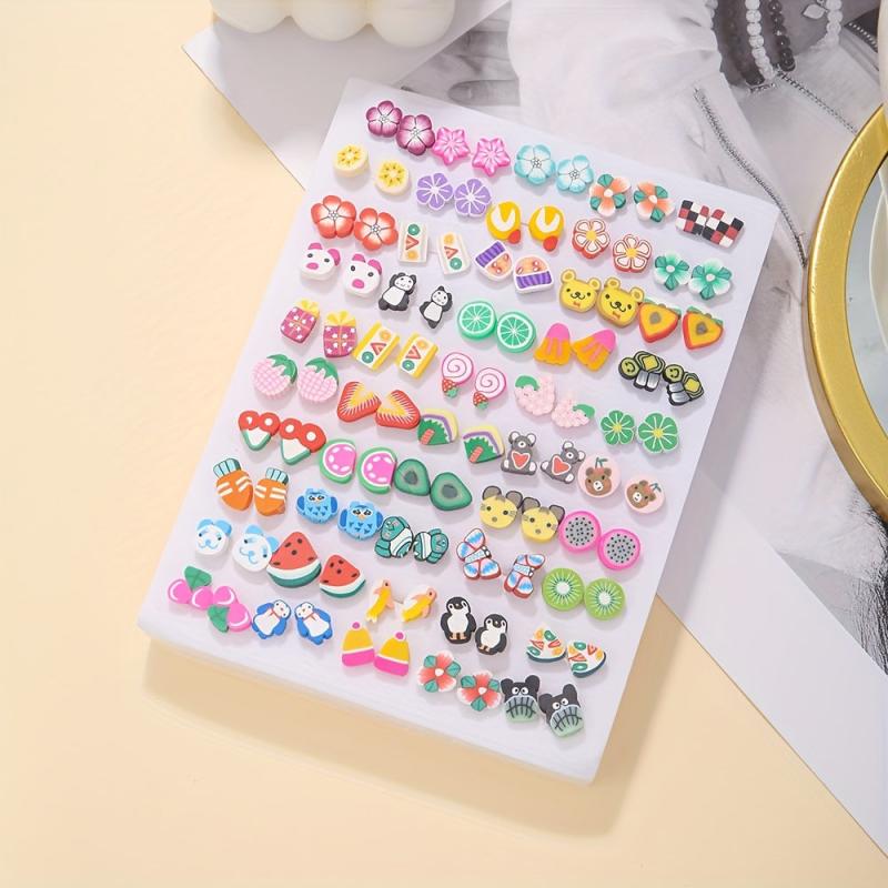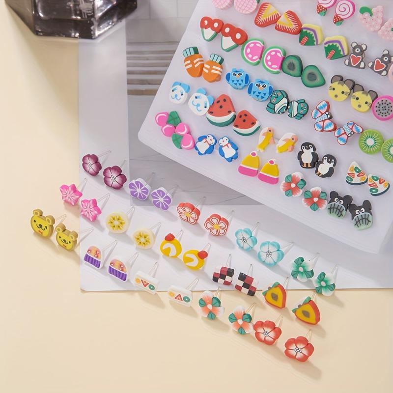 Add a touch of bohemian charm to your outfit with this set of colorful resin stud earrings featuring cute animal and fruit designs. Perfect for a fun and casual look.