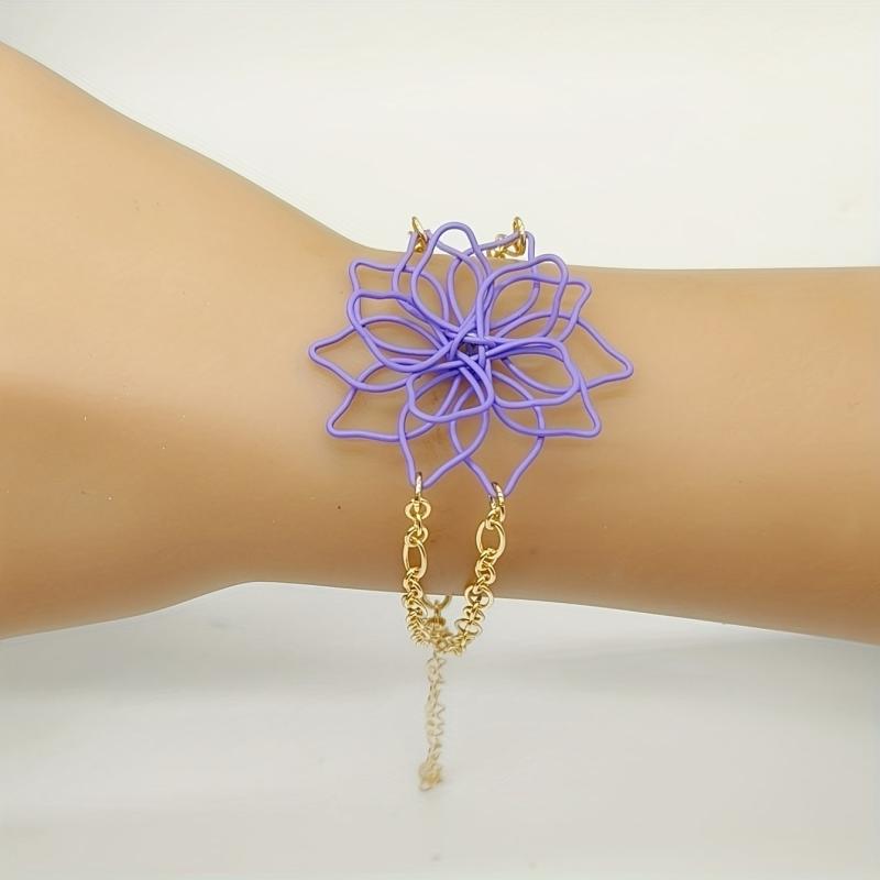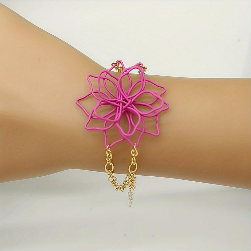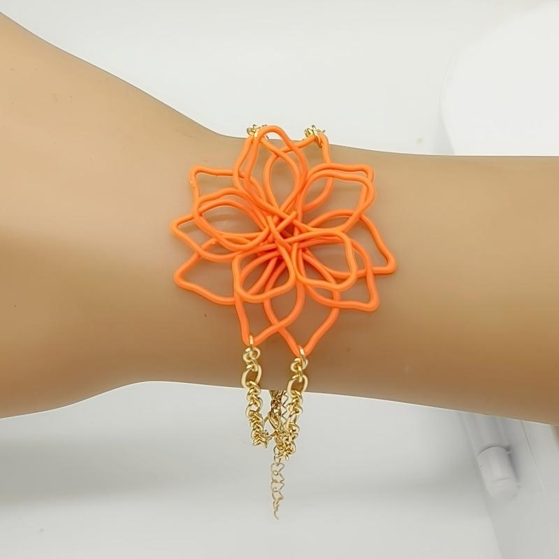 Add a pop of color to your outfit with this handcrafted double layer hollow flower bracelet featuring vibrant candy colors. Perfect for everyday wear or special occasions.