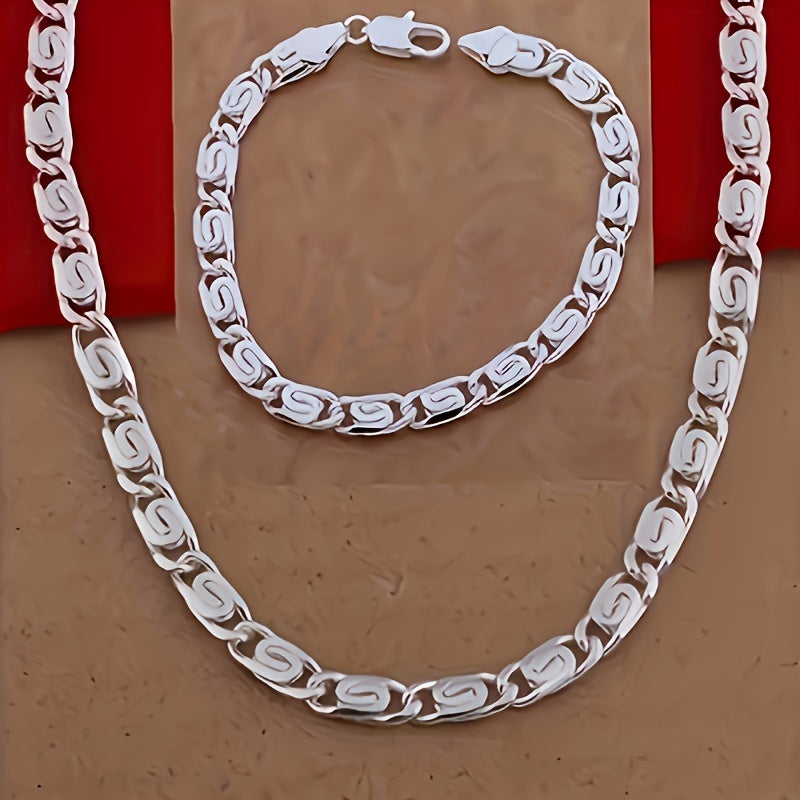 Stainless steel couple's jewelry set featuring interlocking heart lock pendant necklace and bracelet, perfect gift for men and women.