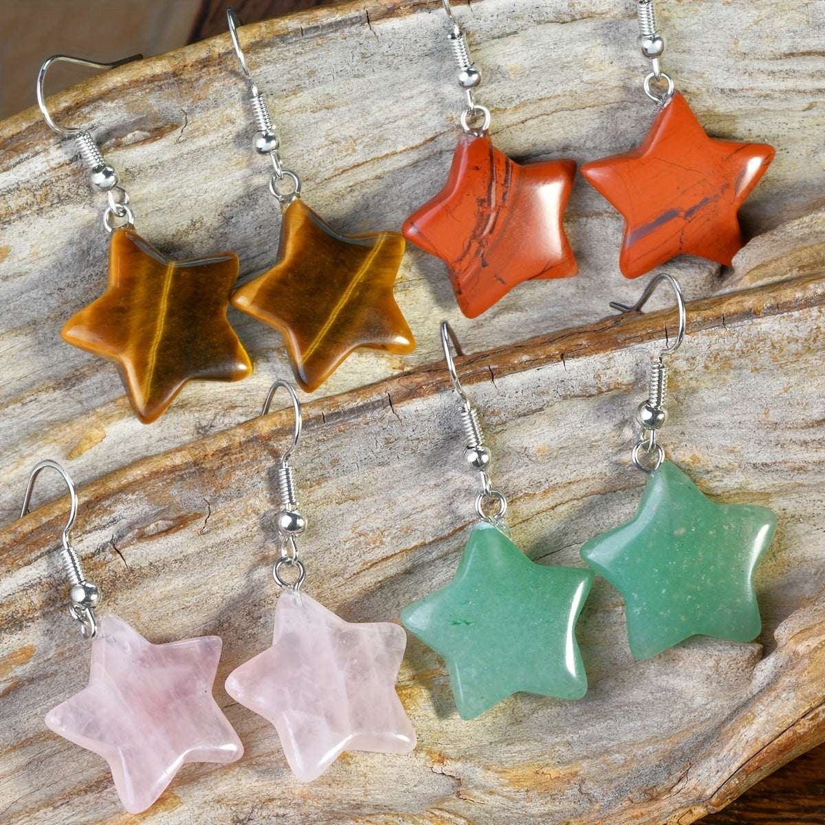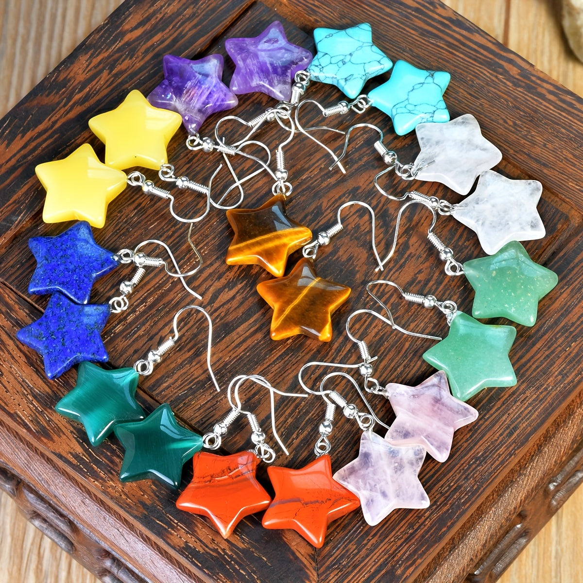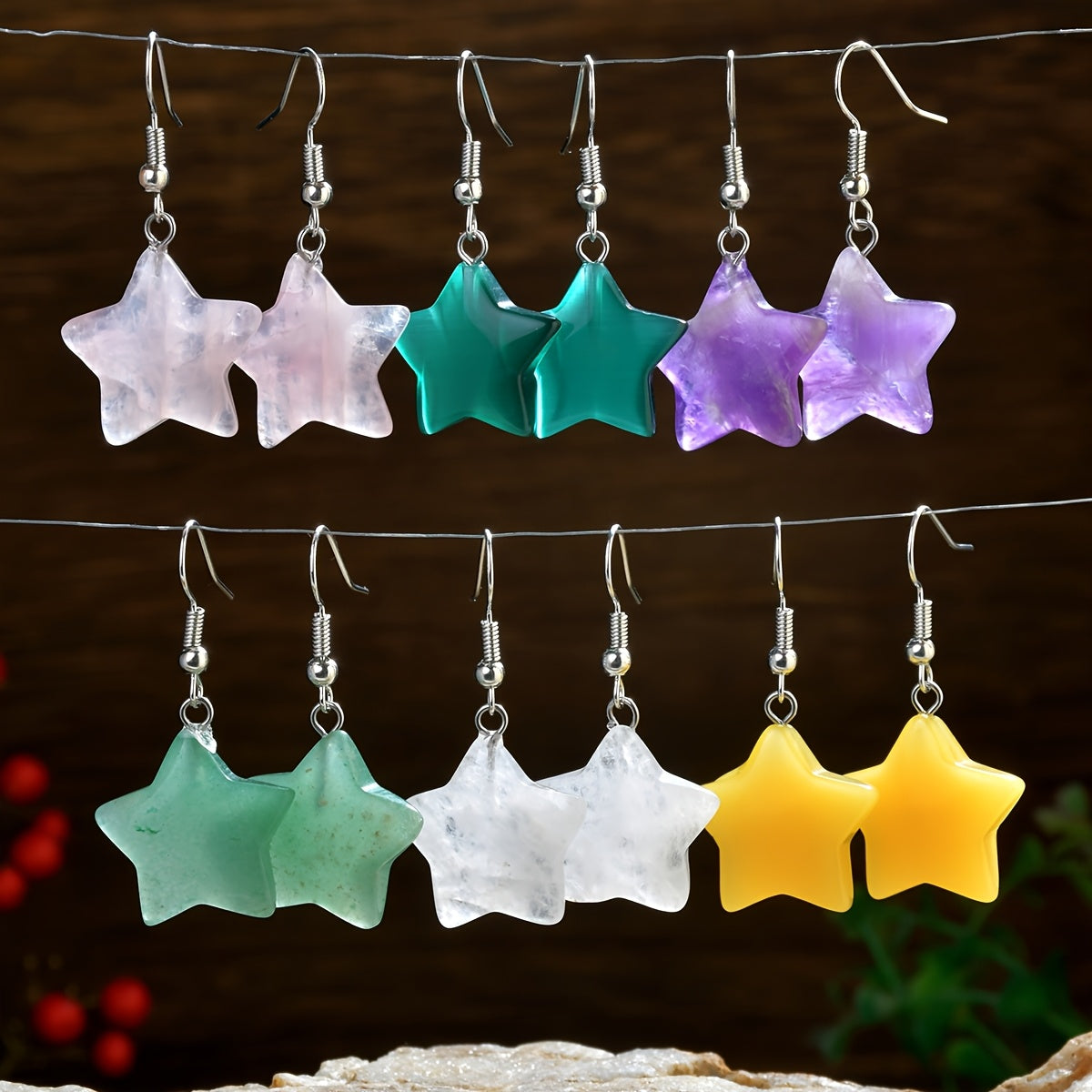 Elevate your beach party look with these vibrant colored natural stone star earrings. Perfect for vacation occasions and summer fun.