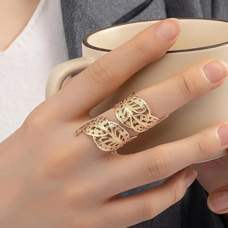 Elevate your style with this boho chic open leaf iron ring. Plated with 14K gold, it's lightweight and perfect for daily wear in all seasons.