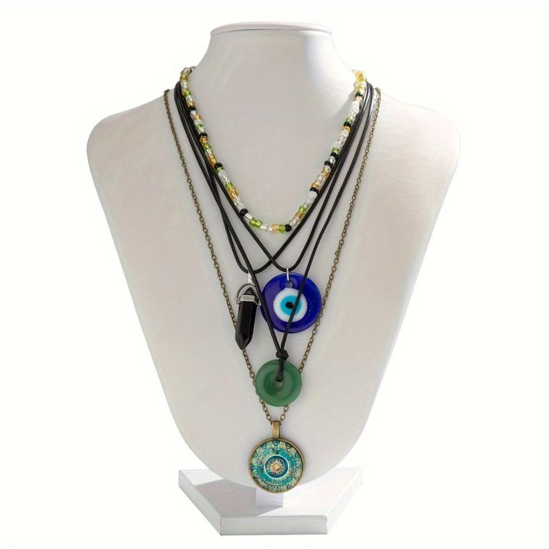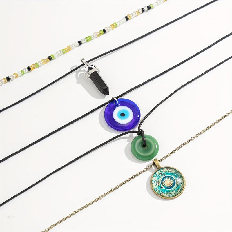 Embrace bohemian western style with these versatile necklaces featuring evil eyes and artificial crystal pendants. Lightweight and fashionable, perfect for gifting to friends.