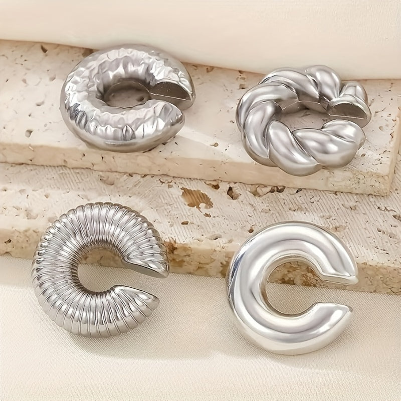 Elevate your style with this 4-piece set of bold and chunky resin ear cuffs. Perfect for daily wear or party occasions, these non-plated accessories add a touch of glamour to any outfit.