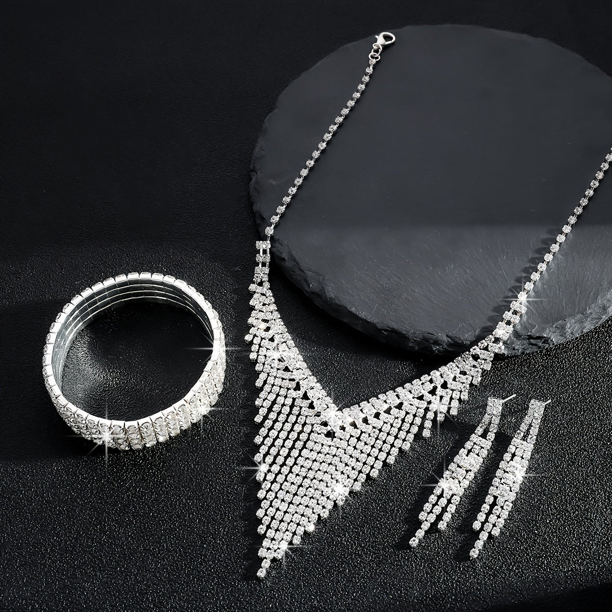 Bridal Jewelry Set Tassel Necklace Bracelet & Earrings