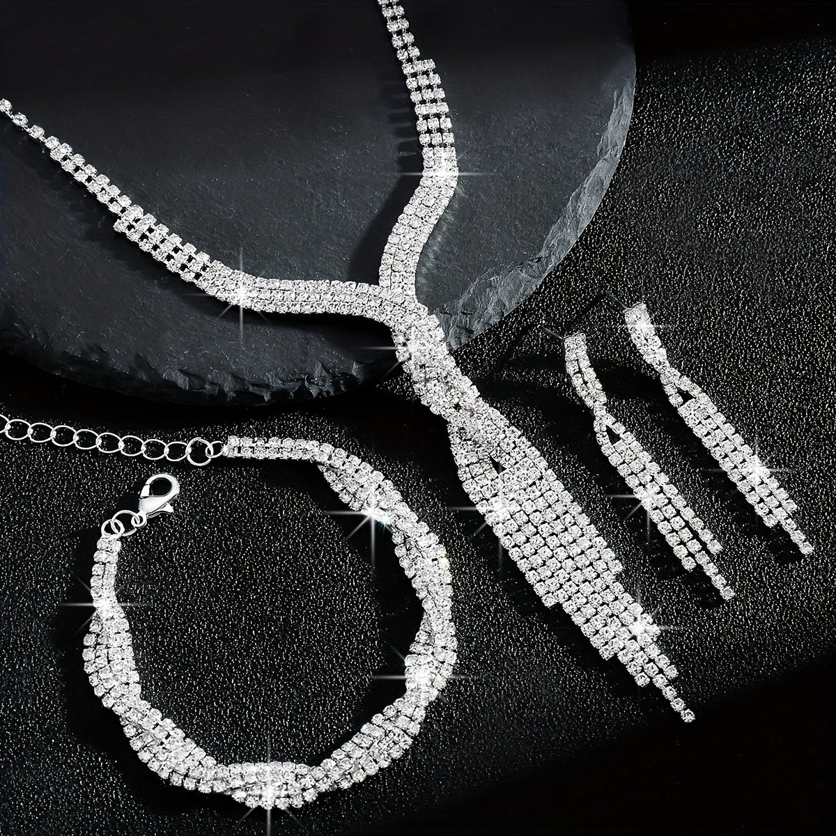 Elegant three-piece set featuring high-end sparkling rhinestone twist tassel design. Perfect for brides on their special day.