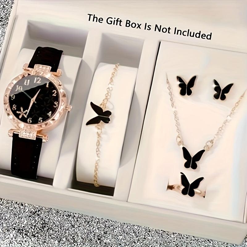 This unisex set includes a quartz watch and 5 pieces of butterfly-themed jewelry. It's perfect for women's parties, holidays, and birthdays.