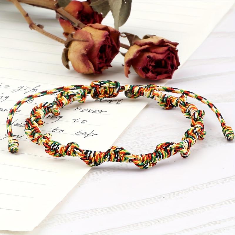 This vibrant weaving bracelet features a skylark knot design and lucky charm. Made of durable nylon, this unisex wristband is perfect for daily wear and gift occasions throughout all seasons.