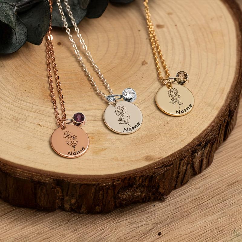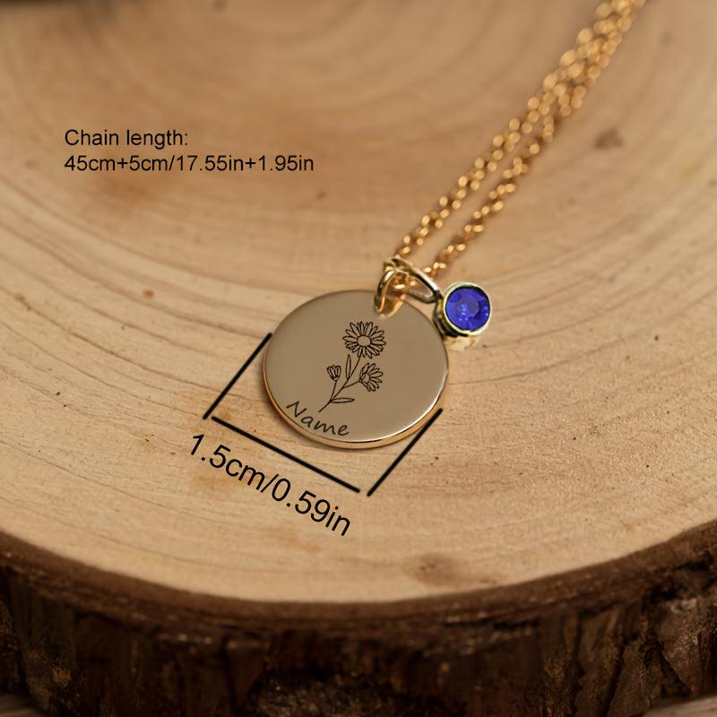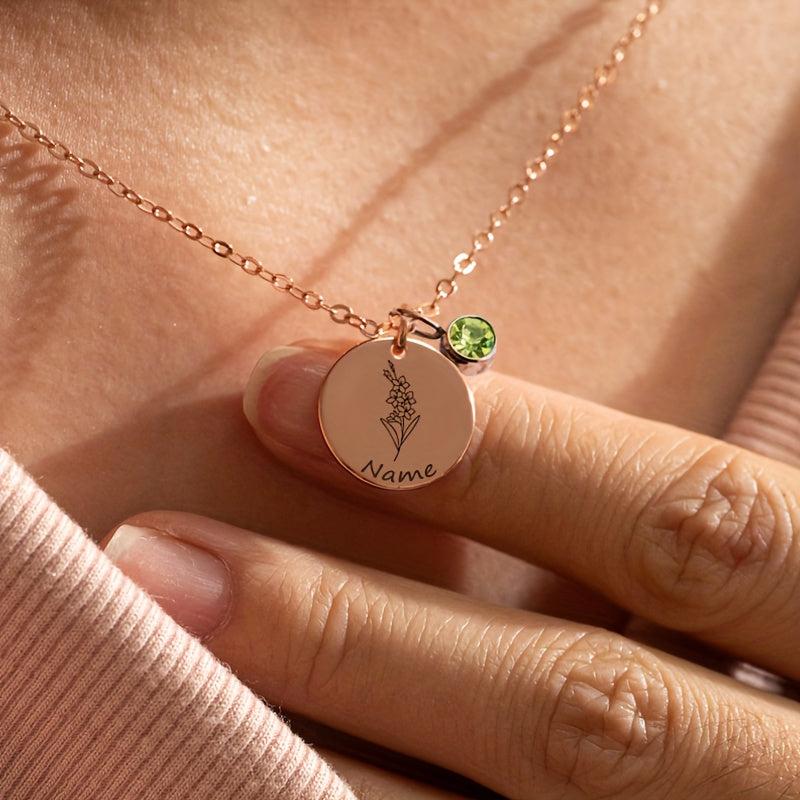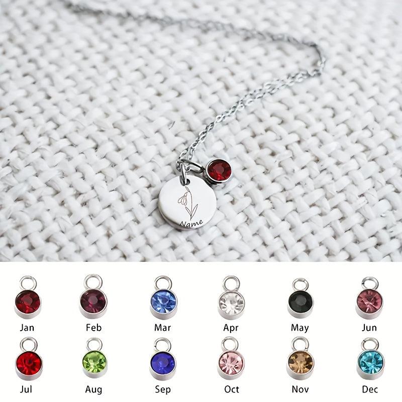 This personalized necklace features a birth flower design with rhinestone accents. Made of 316 stainless steel, it's an ideal gift for her.