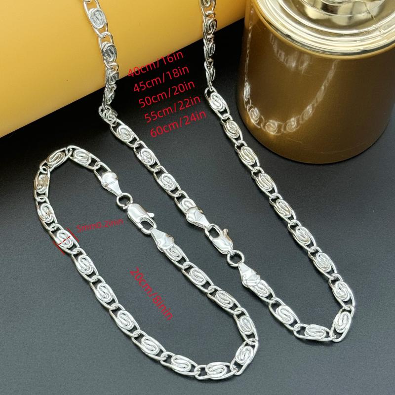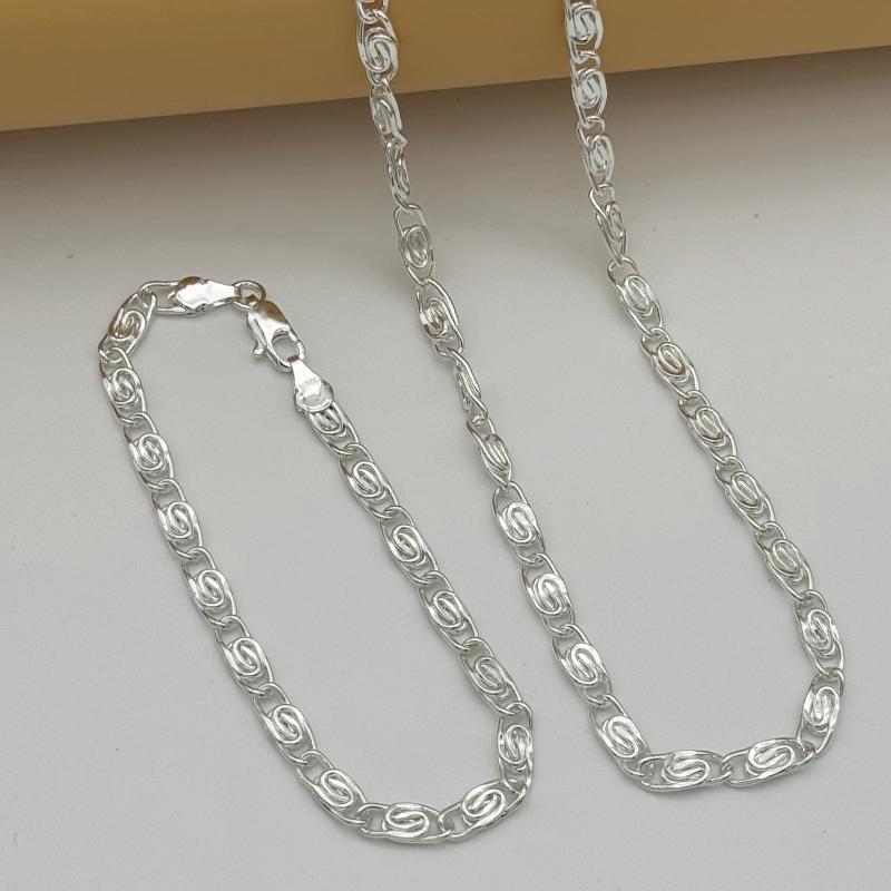 This stylish silvery couple's concentric chain bracelet necklace set is perfect for any occasion.