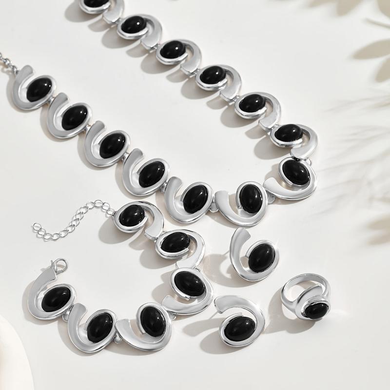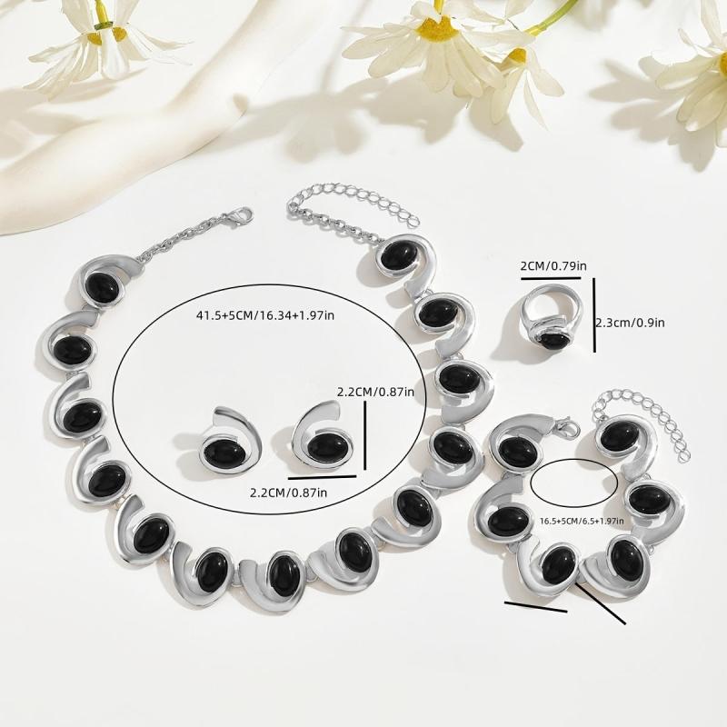 Fashionable Silvery Jewelry Set Geometric Oval Acrylic Inlaid Spiral Stitching