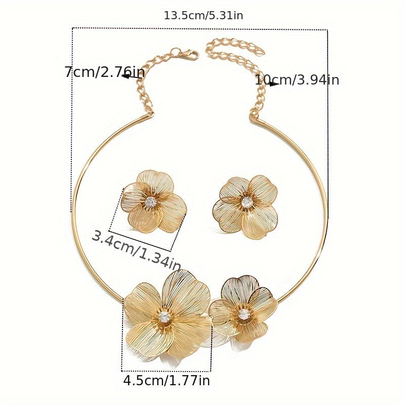 Stunning 3-piece set featuring hollow 3D flower design. Made of iron, perfect for daily wear or parties. Suitable for all seasons.