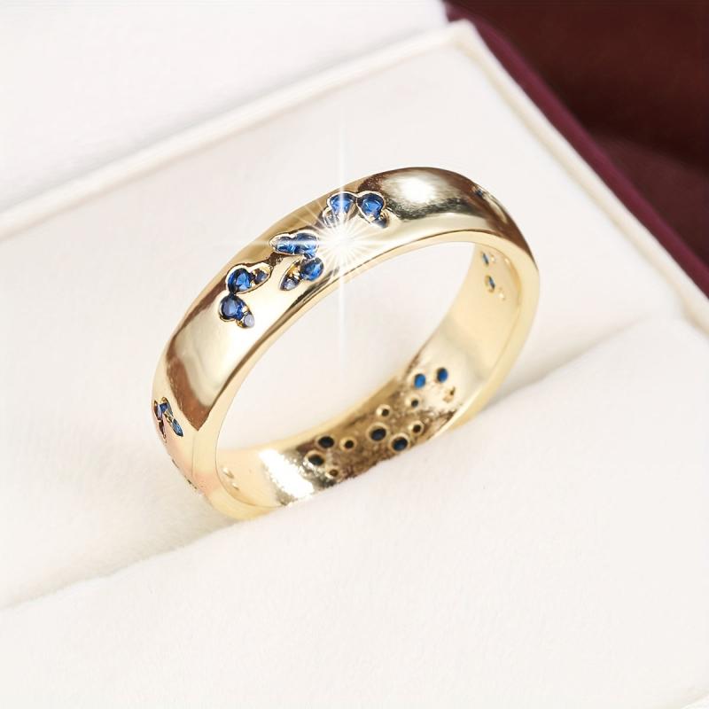 Golden Butterfly Ring with Cubic Zirconia for Women