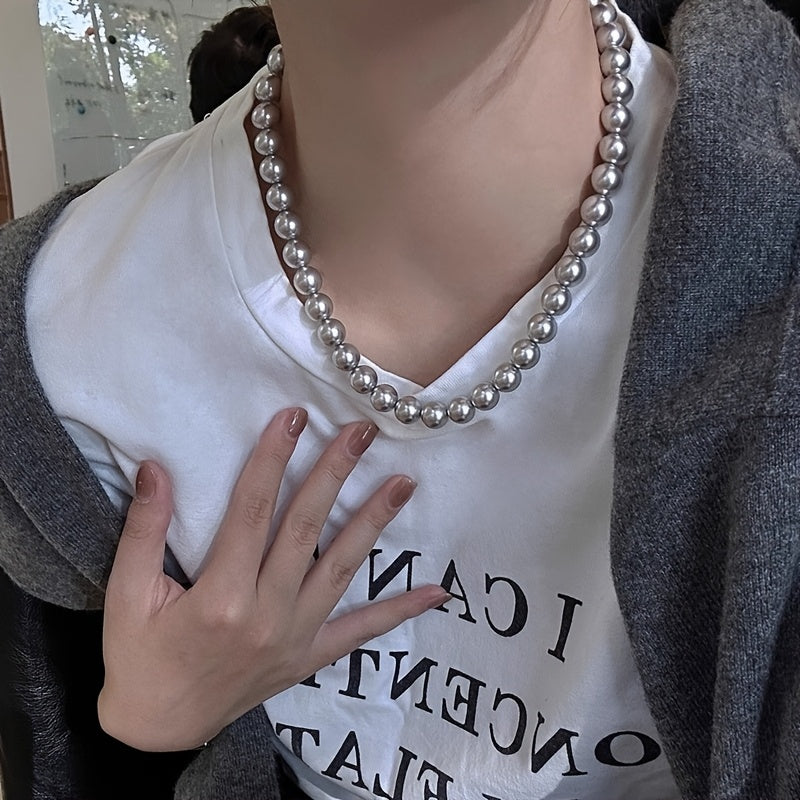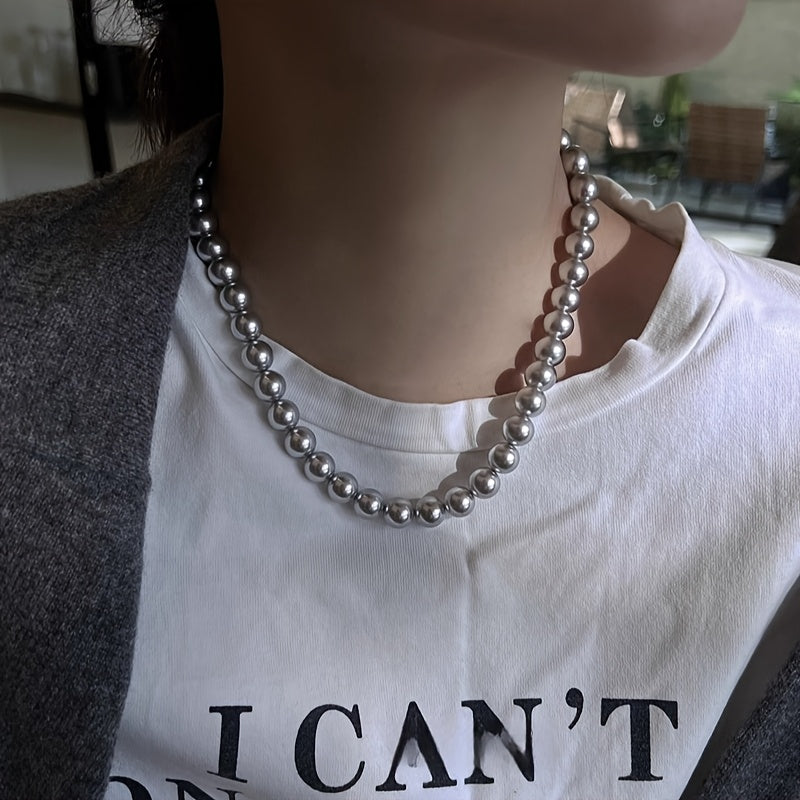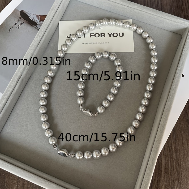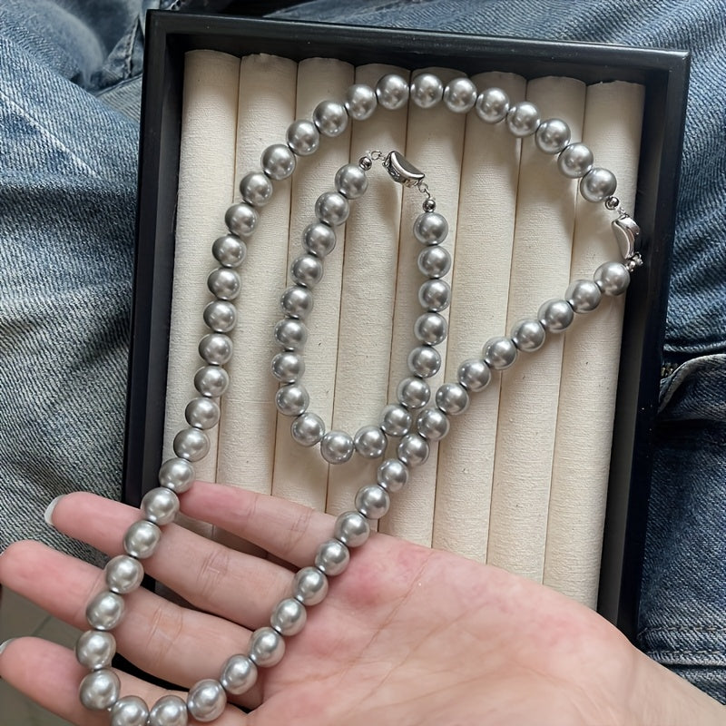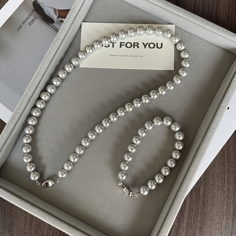 This two-piece set features a gray strong light beaded necklace and bracelet, perfect for daily wear or vacation.