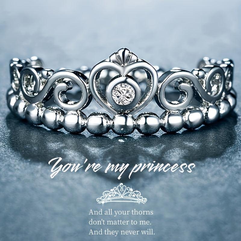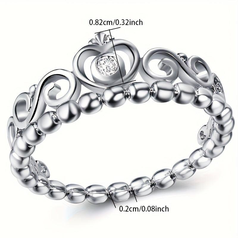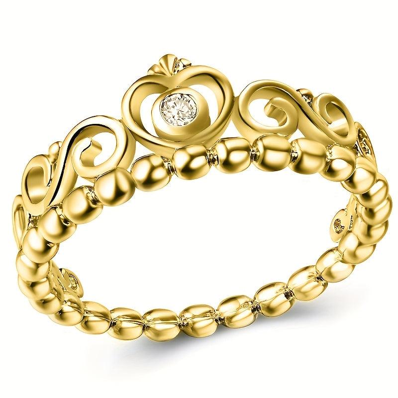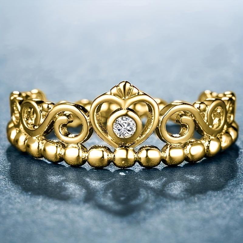 Romantic promise ring featuring a heart crown design with synthetic zirconia stones. Gold plated for an elegant touch, ideal for weddings, anniversaries, or as a romantic gift for her.