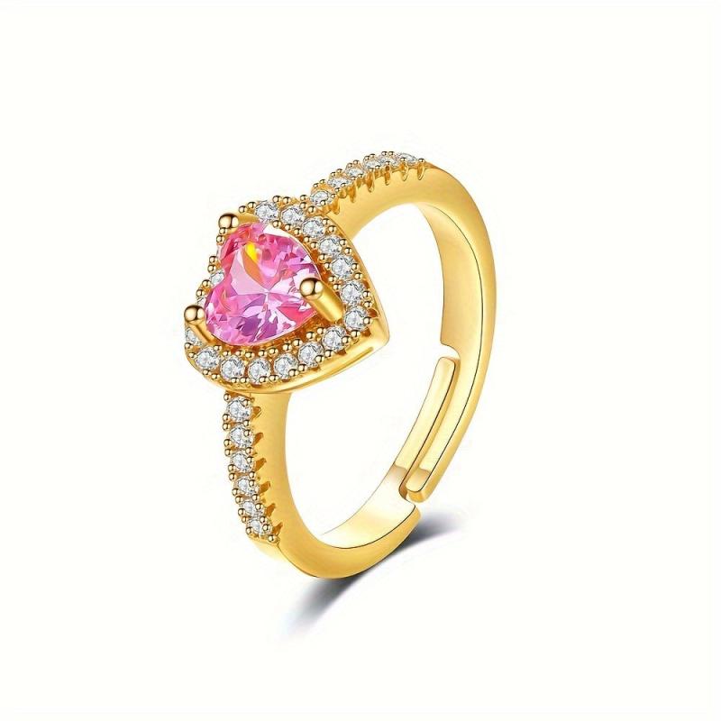 Add a touch of elegance with this heart-shaped ring featuring sparkling cubic zirconia stones. Perfect for engagements, weddings, anniversaries, or as a thoughtful gift for any occasion.