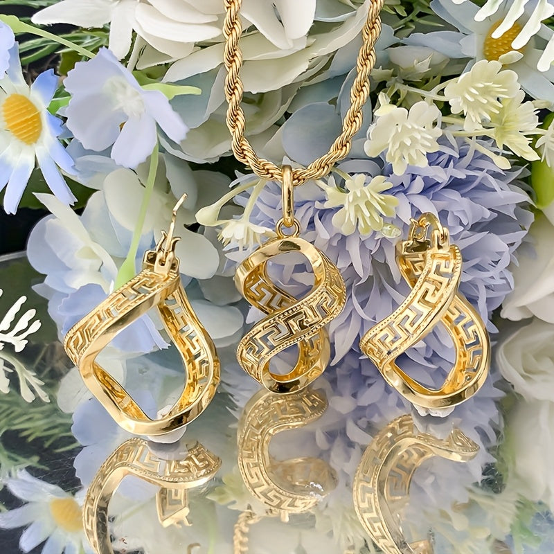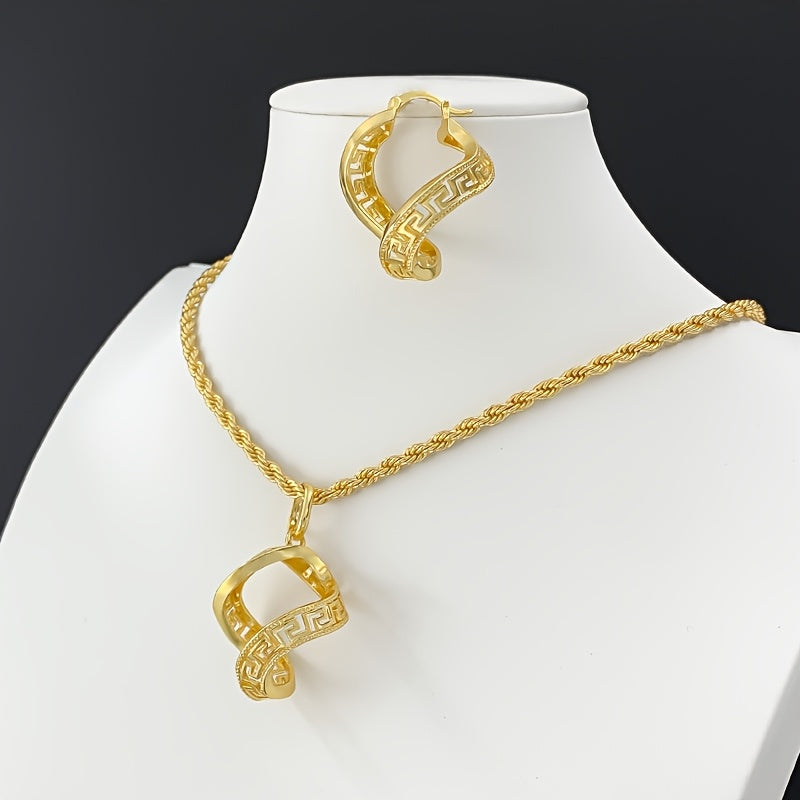 Add a touch of elegance with this unique Irregular Hollow Earrings and Pendant Necklace Set. Perfect for bridal wedding accessories or as a gift for someone special.