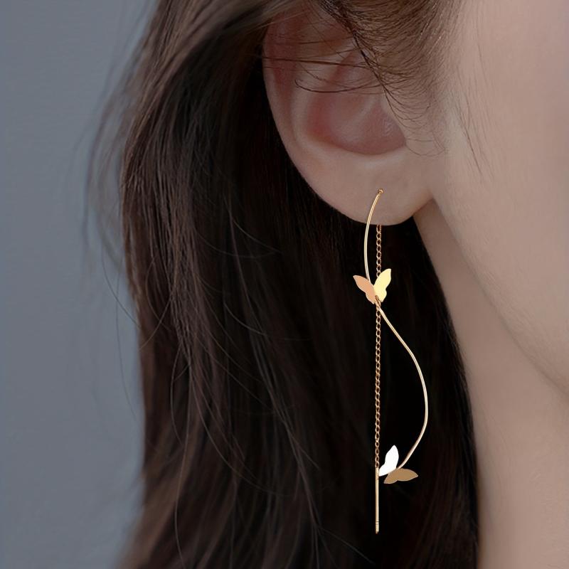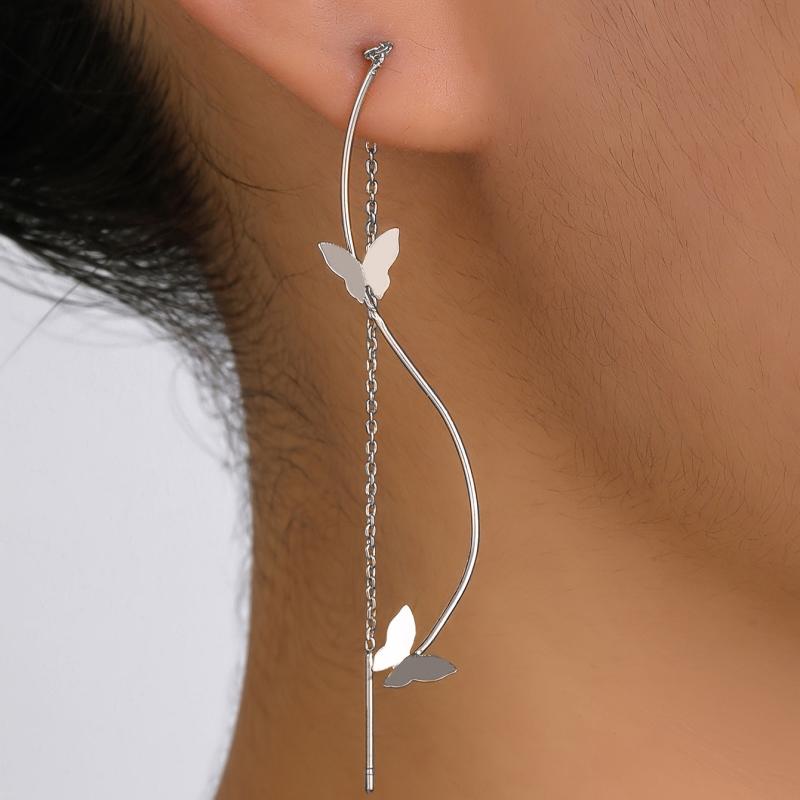 Enhance your style with this Japanese-inspired butterfly pendant ear line. Perfect for adding a touch of elegance to your outfits.