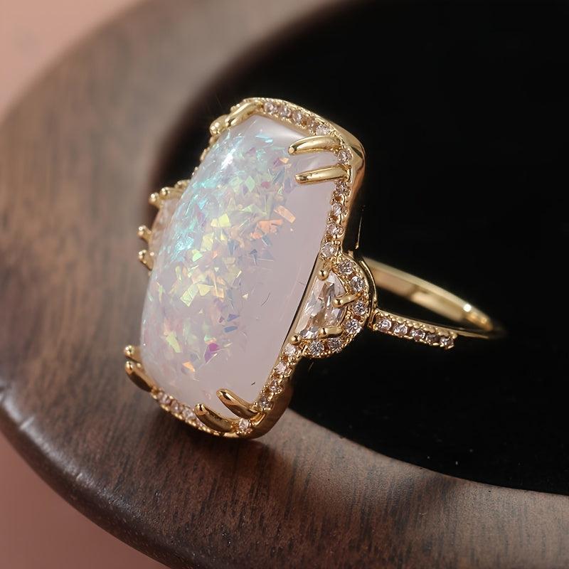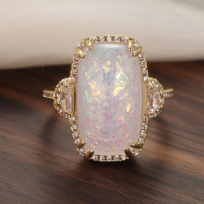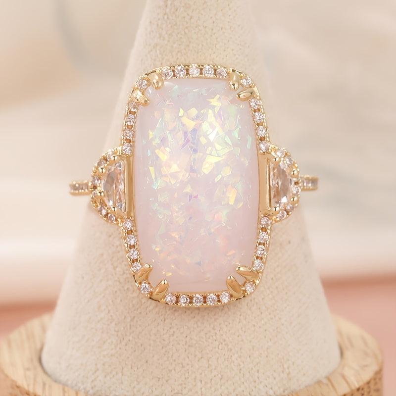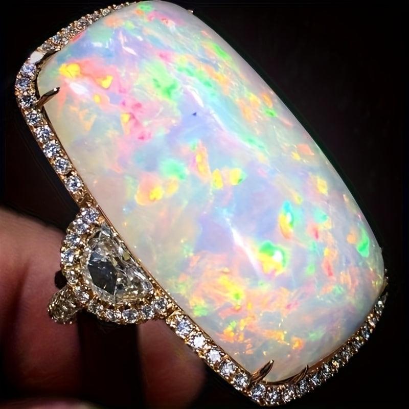 Large Elliptical Fire Opal Ring for Wedding Engagement Stylish Jewelry
