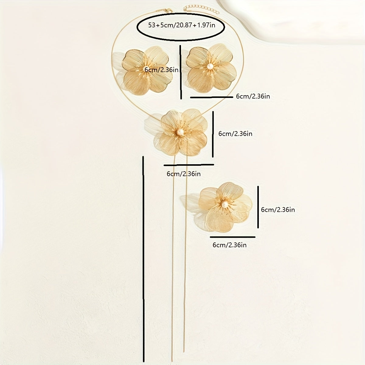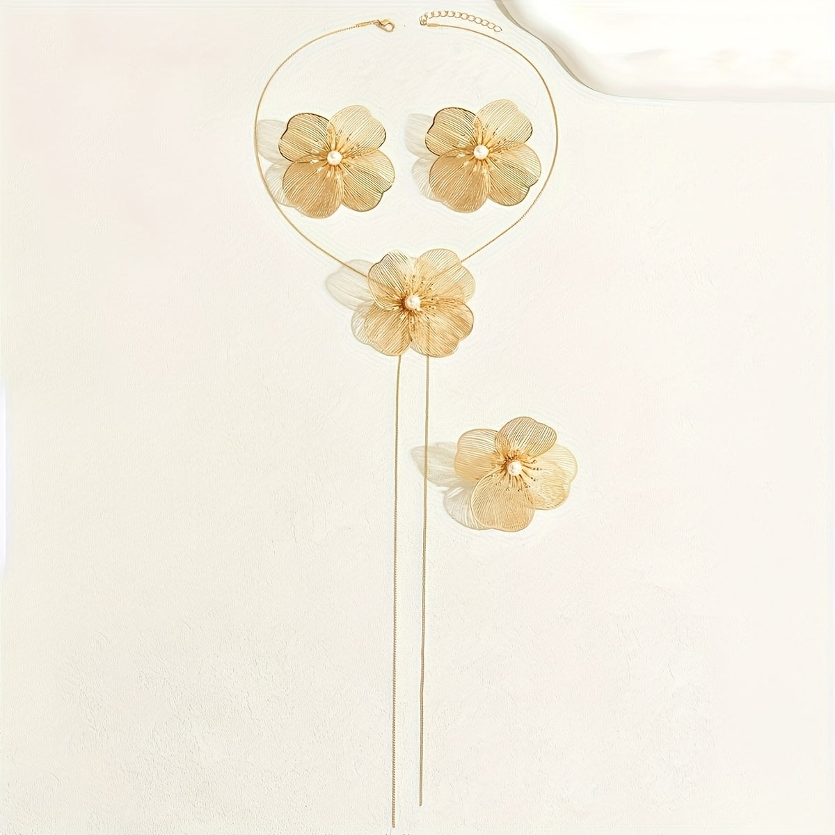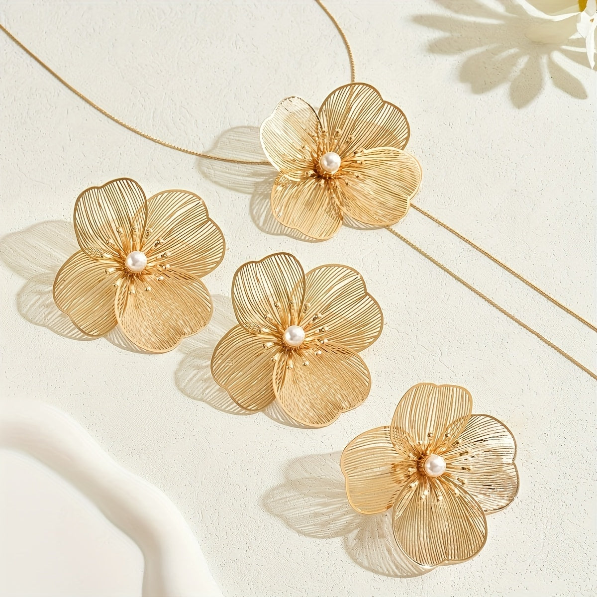 Complete your look with this stylish metal jewelry set featuring a hollow flower design. Perfect for banquets and parties, it adds a touch of elegance to any outfit.