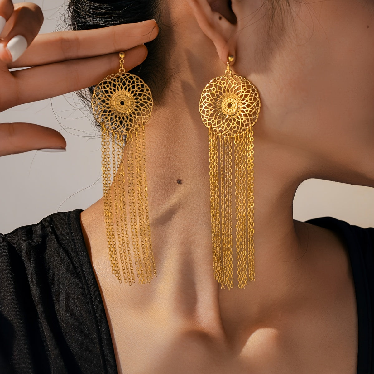 Metal Style Tassel Necklace and Earrings Set, Banquet Party Jewelry