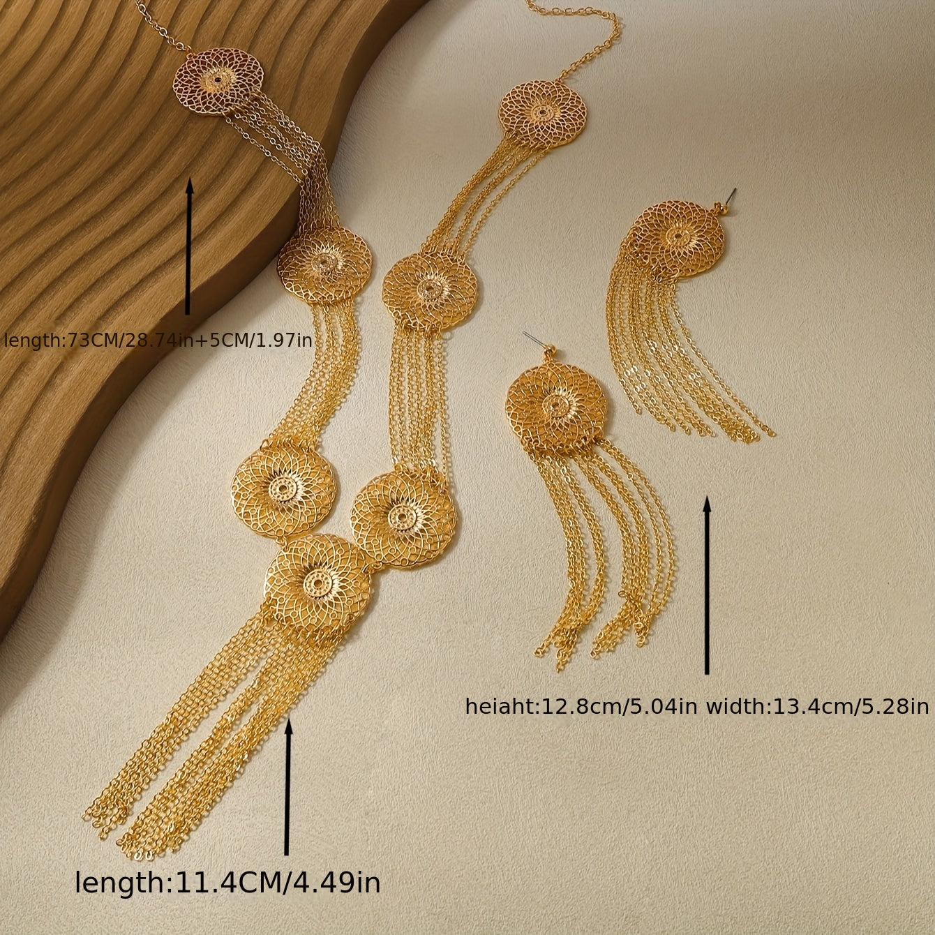 • Includes tassel necklace and earrings