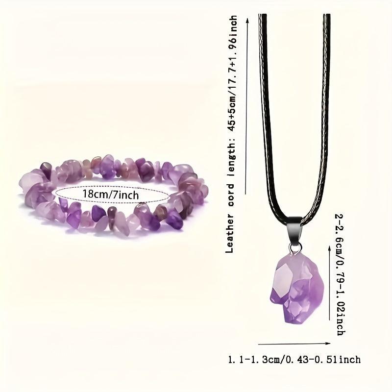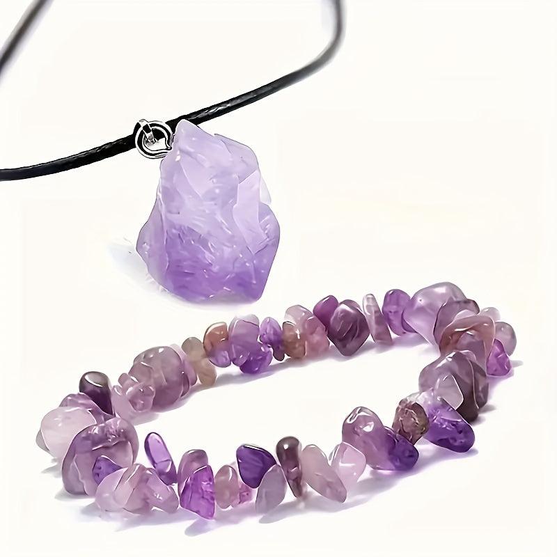 This two-piece set includes a beautiful natural amethyst necklace and an amethyst chip bracelet, making it a perfect gift for couples or loved ones.