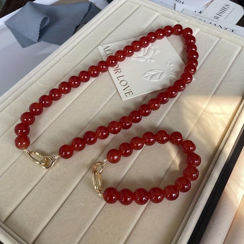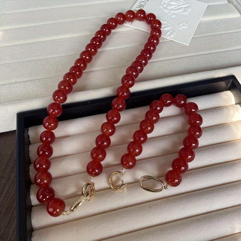 Elevate your style with this 12mm agate bead necklace and bracelet set. Perfect for daily wear and gifting, it adds a touch of elegance to any outfit.