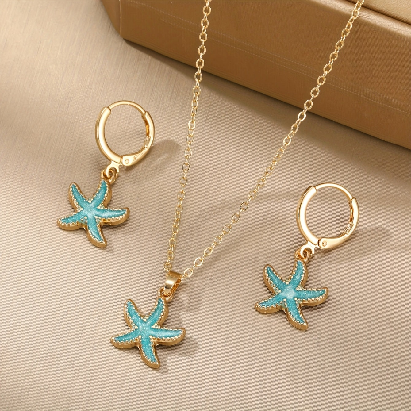 Enhance your beach look with this charming starfish-themed jewelry set designed for women. Ideal for vacations and daily wear.