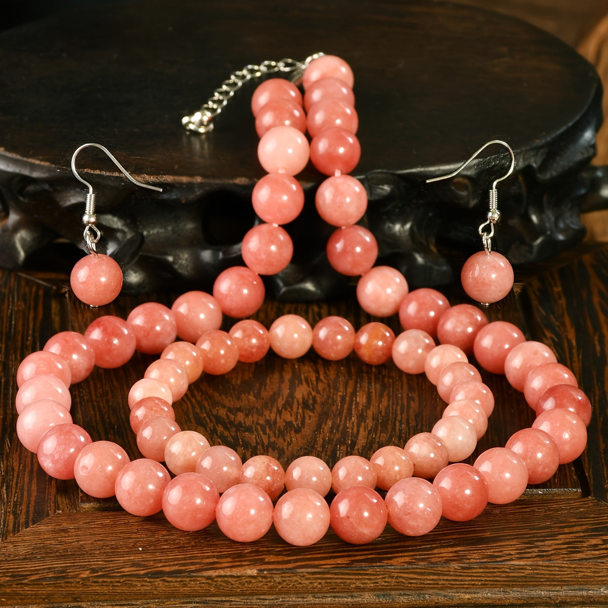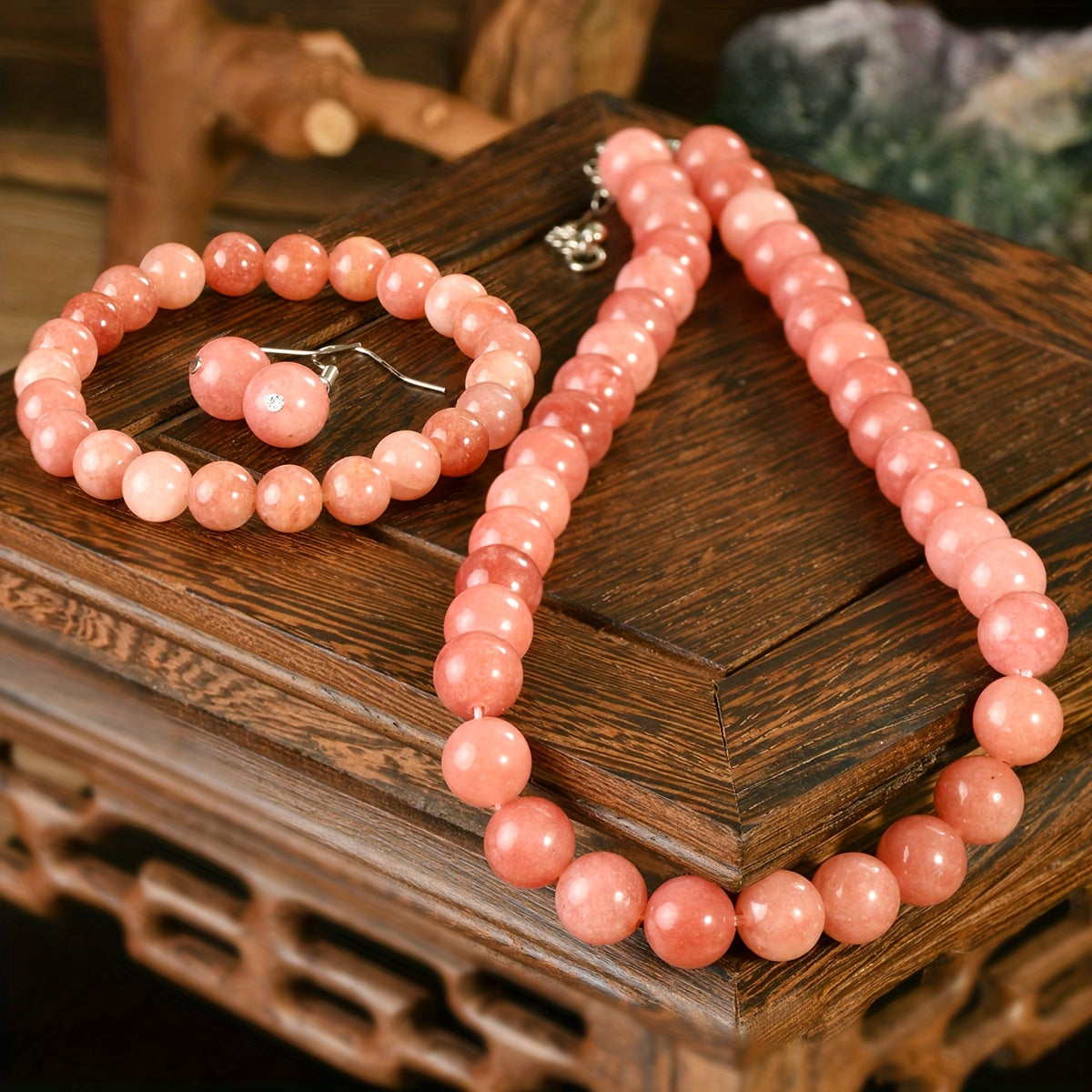 Elevate your style with this exquisite 4-piece pink sun stone jewelry set. Perfect for holiday parties and special occasions.