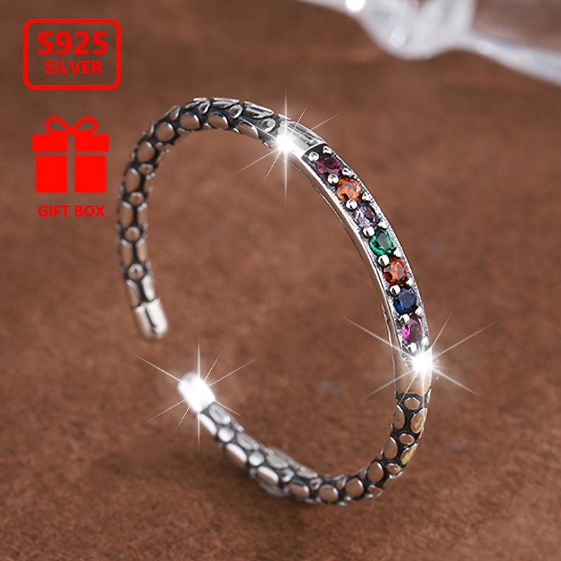 This stunning rainbow-colored statement ring is crafted from 925 silver with a total weight of 0.82 grams, making it an ideal gift for daily wear and special occasions.