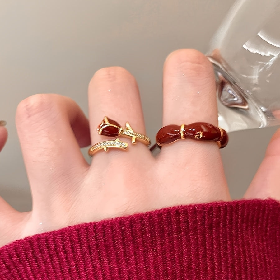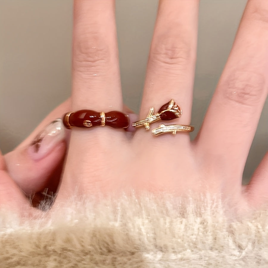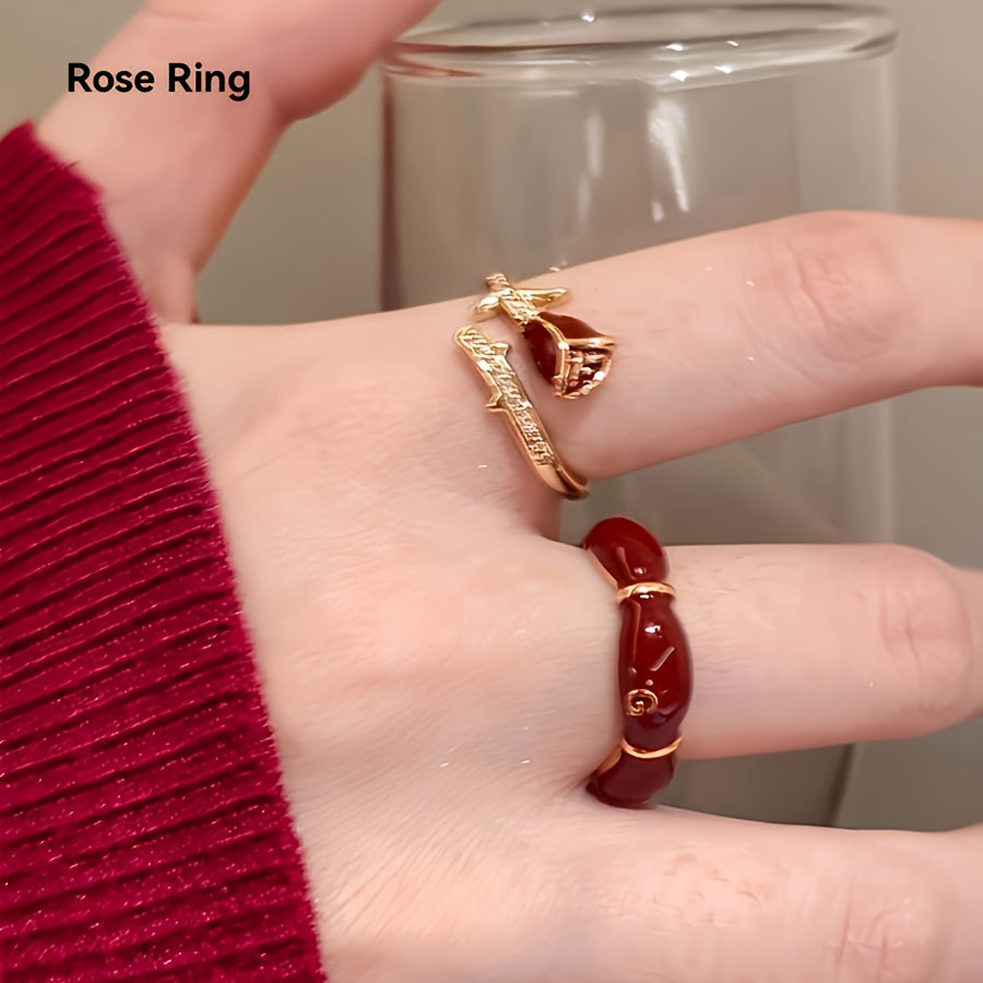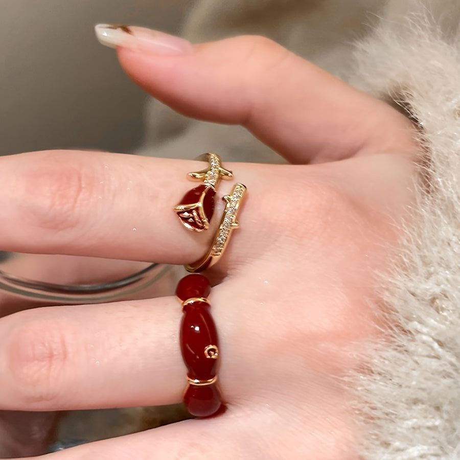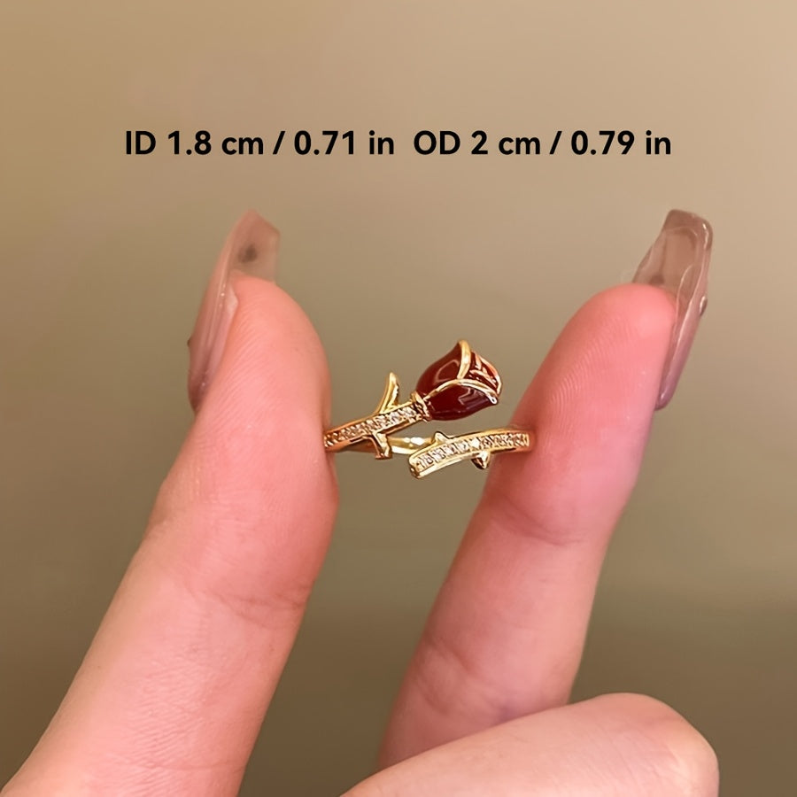 Make a style statement with this fashionable red rose open ring featuring synthetic October birthstone. Perfect for daily wear, parties, anniversaries, Christmas, or Valentine's Day.