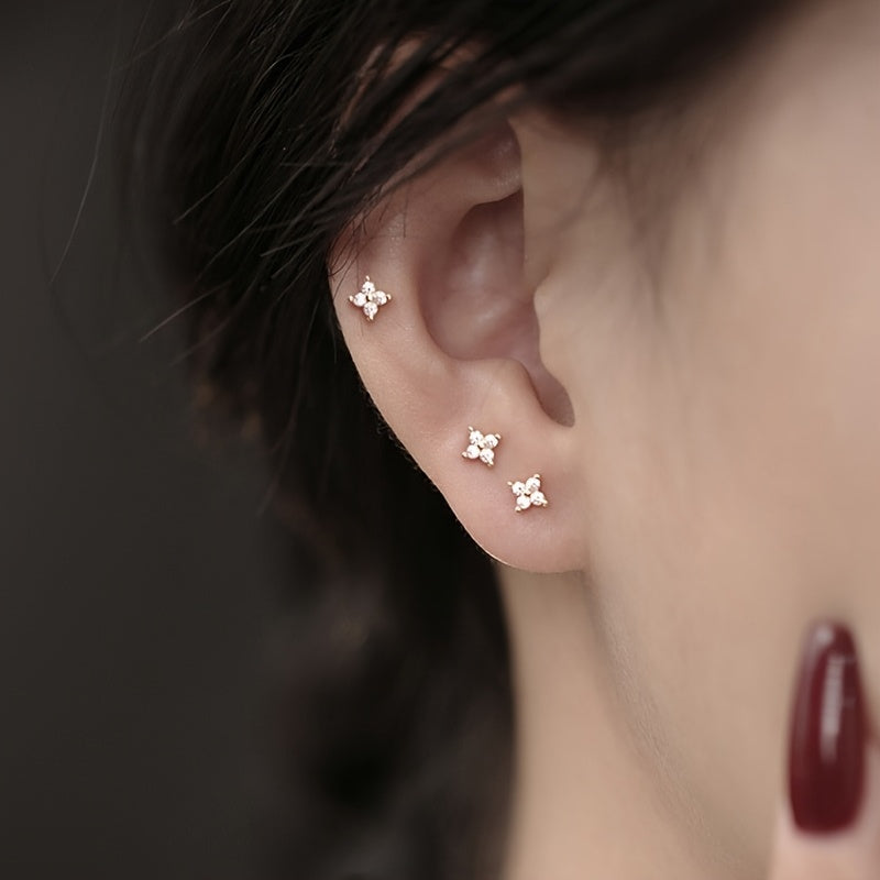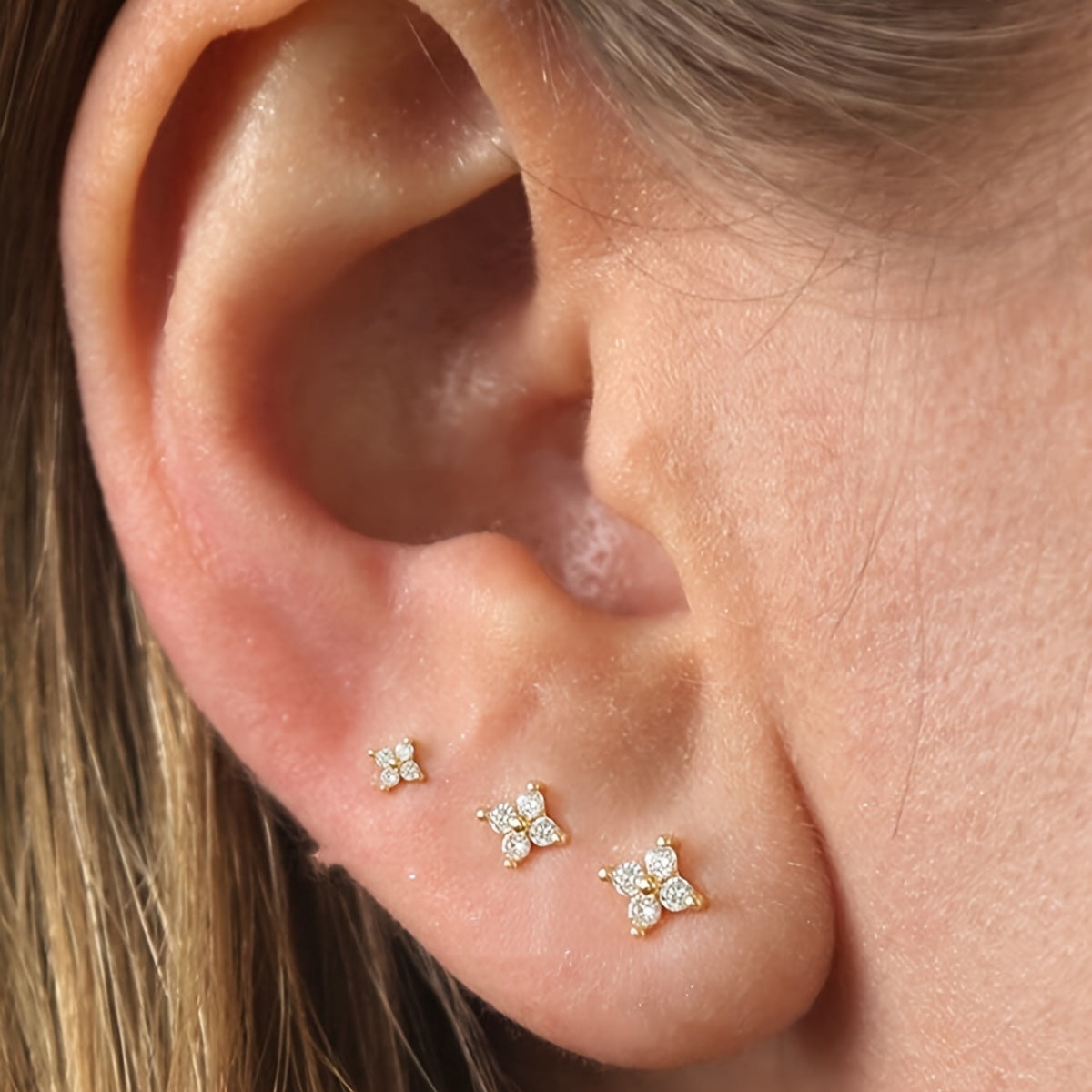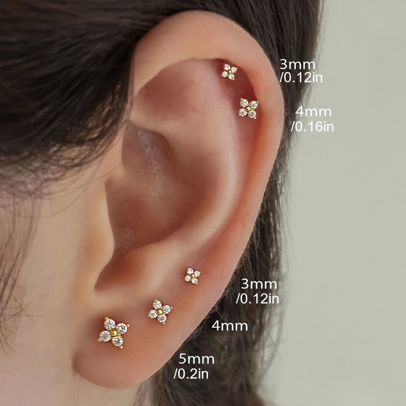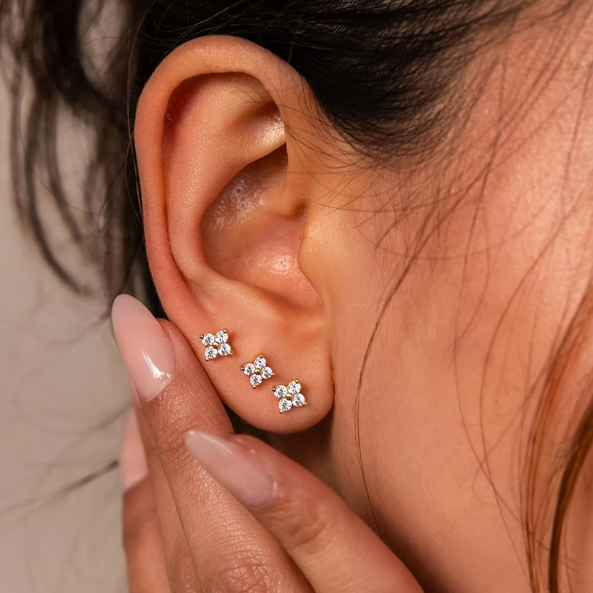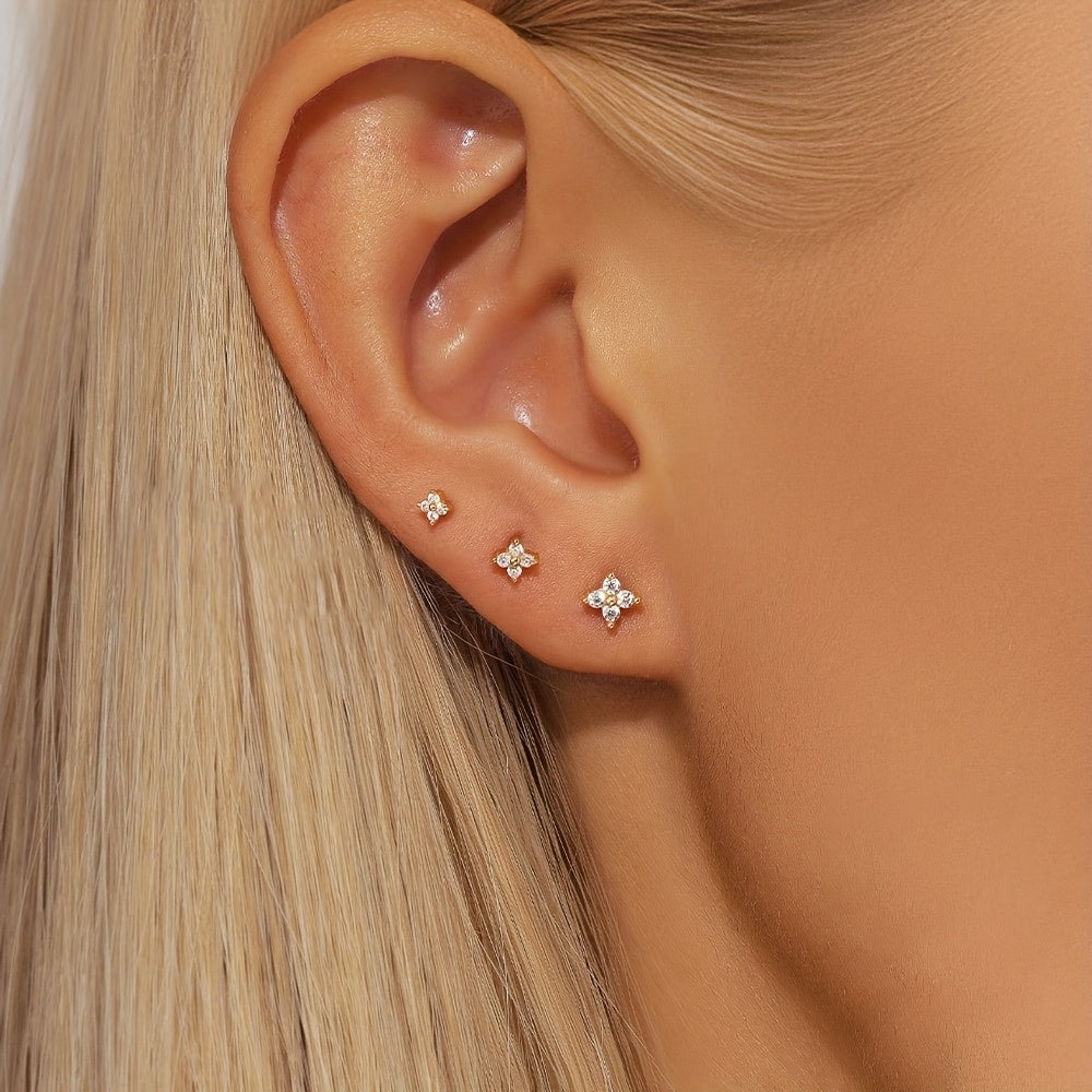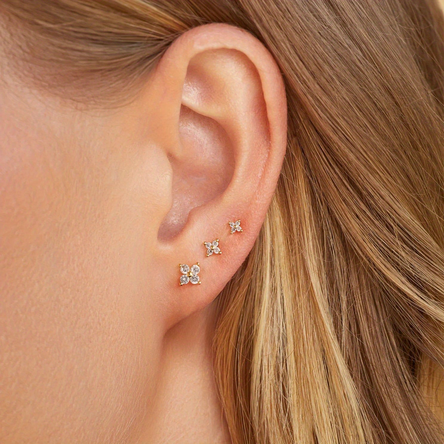 Add a touch of charm to your outfit with this set of three small retro four leaf clover floral earrings. Made from high-quality 18K golden plated stainless steel, these earrings are perfect for parties and special occasions.