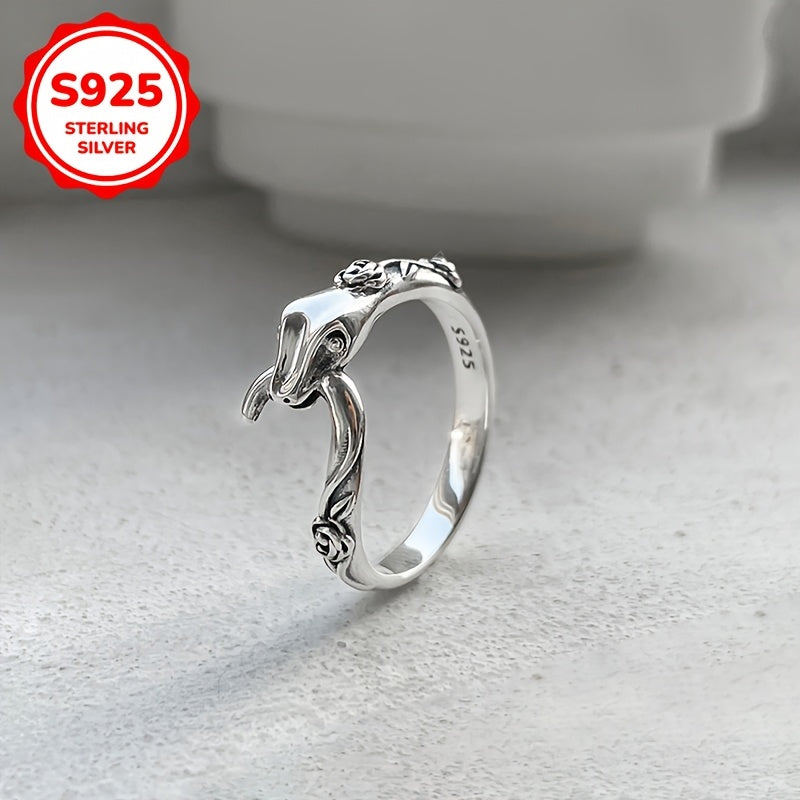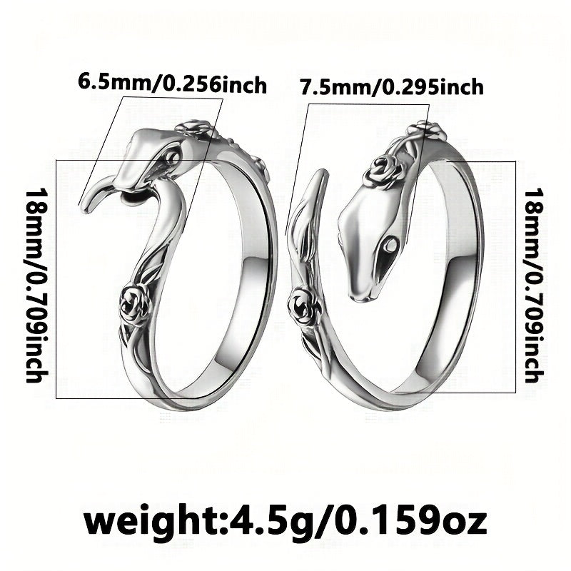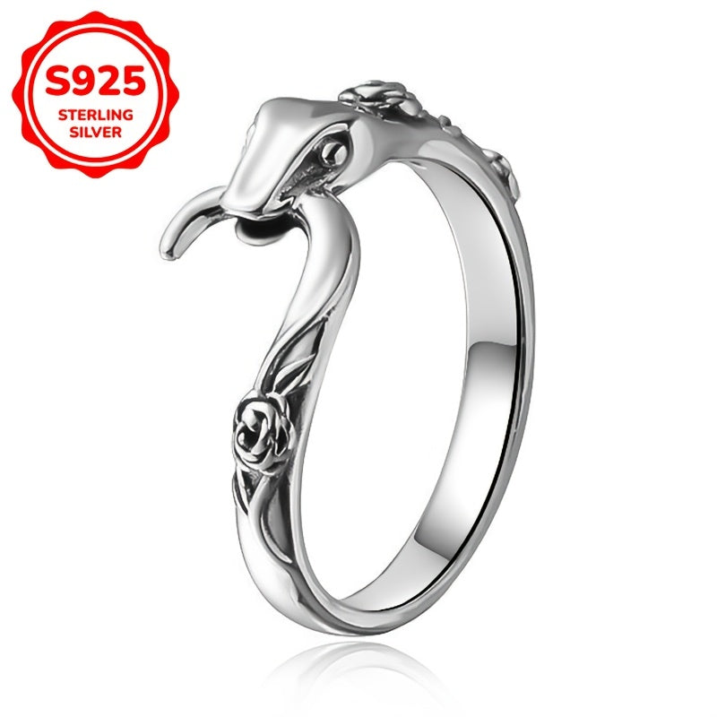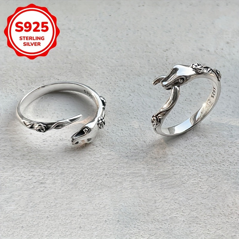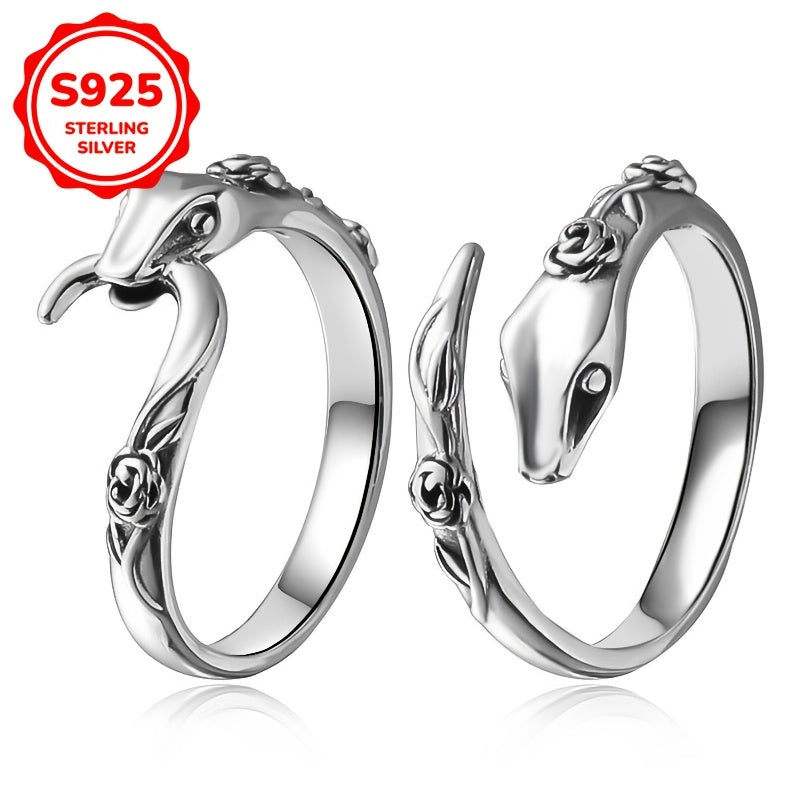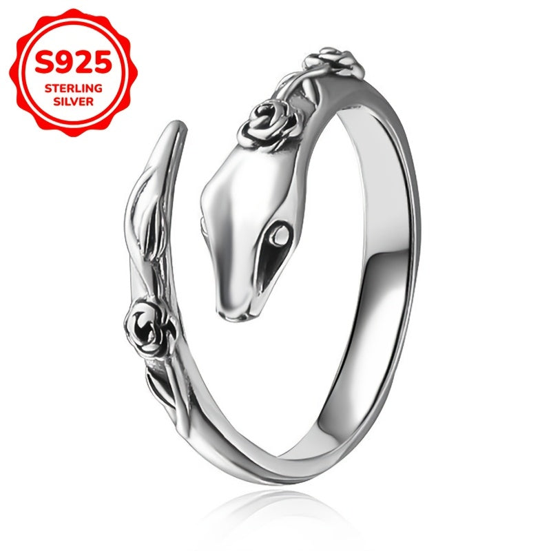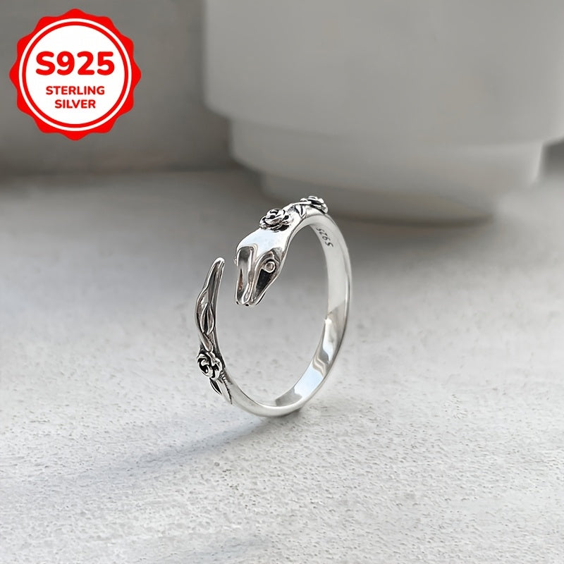 Elegant and chic women's ring featuring a retro rose and snake design. Made of 925 silver, weighing 4.5g. Perfect for daily wear or vacation.