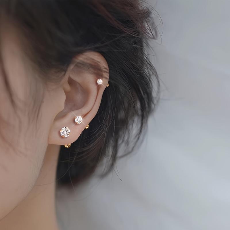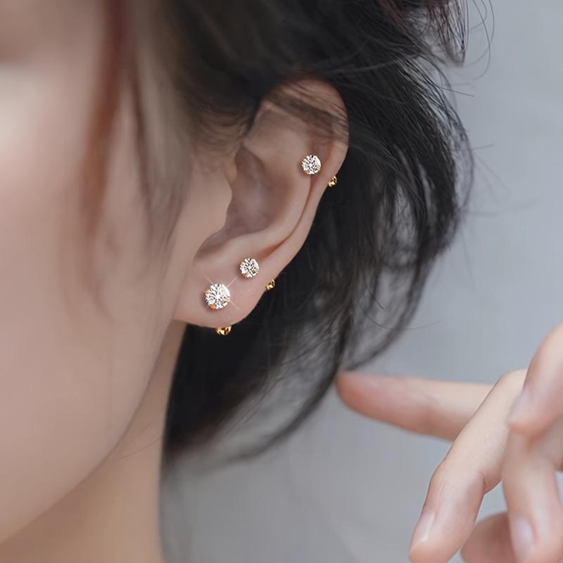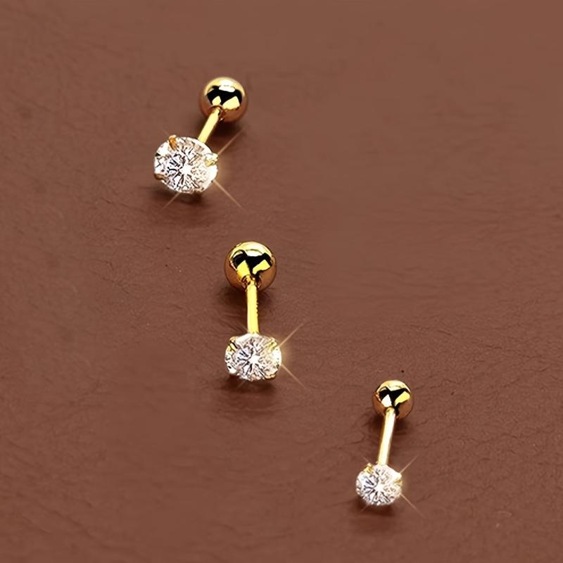 Elevate your style with this 3-piece set of stainless steel ear studs inlaid with synthetic zirconia. Perfect for daily wear, parties, and banquets.