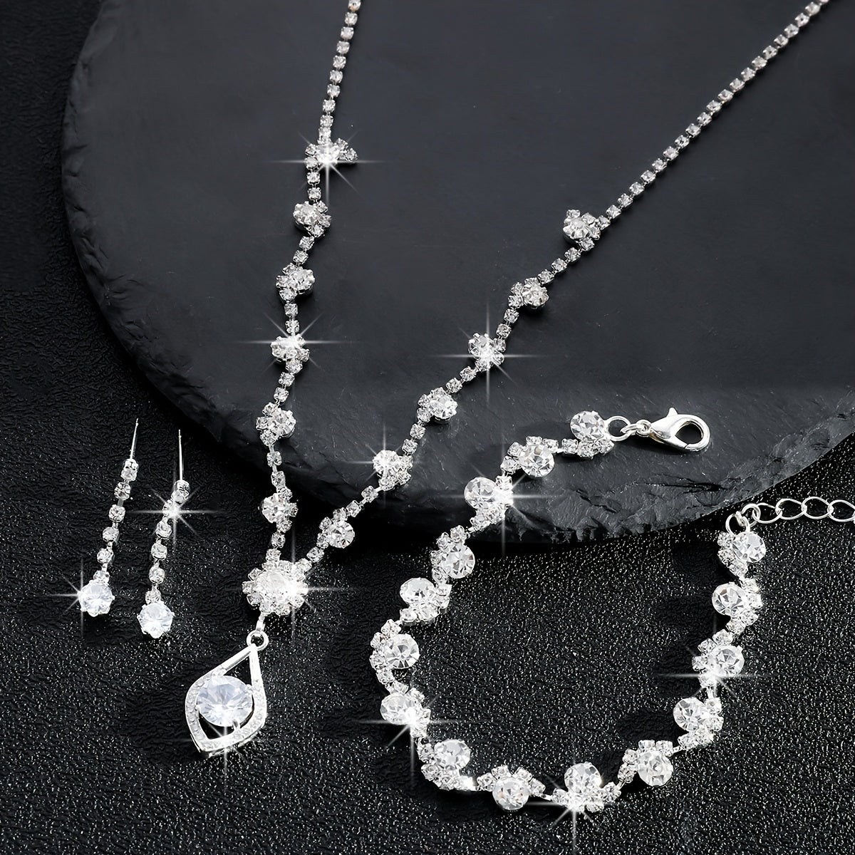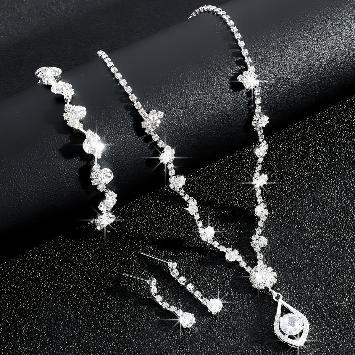 Complete your look with this elegant jewelry set featuring sparkling rhinestone flower designs. Perfect for brides, special events, or everyday wear.