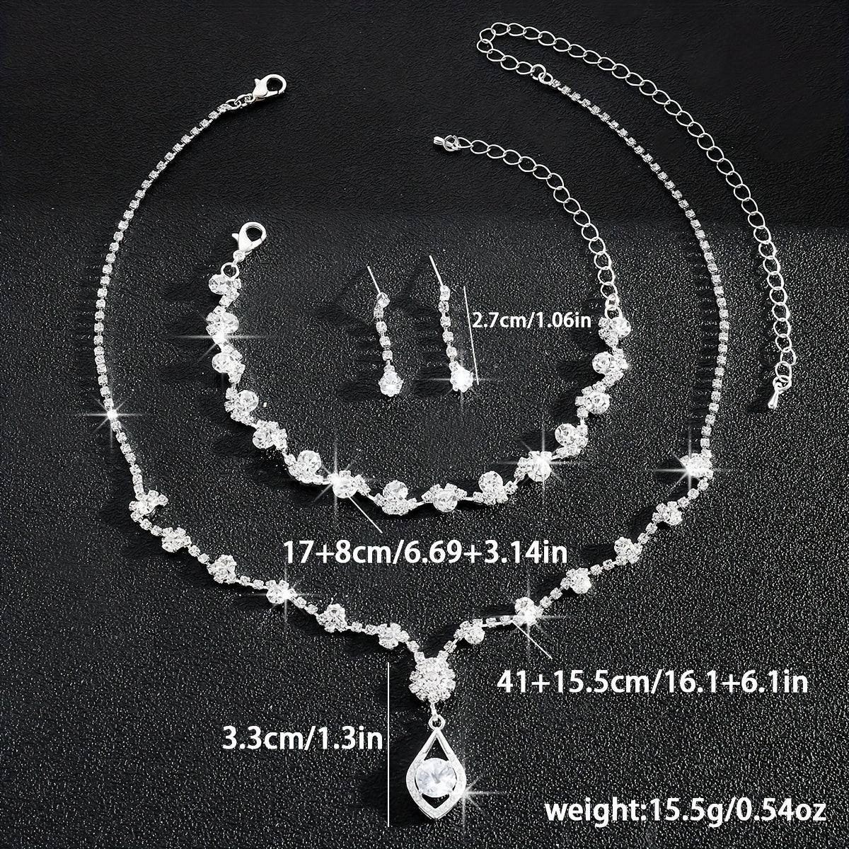 • Set includes necklace, bracelet, and earrings