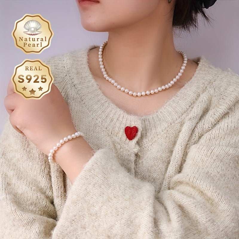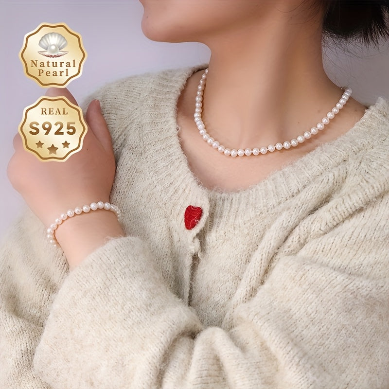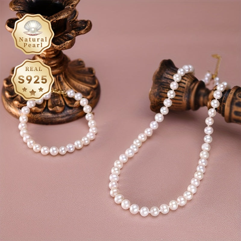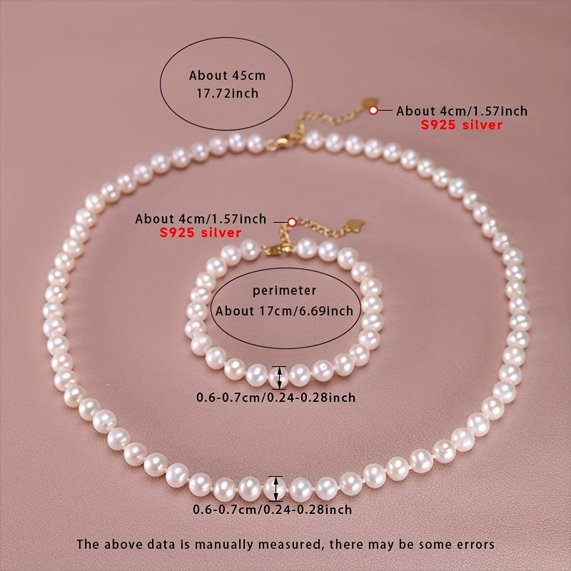 Elegantes Schmuckset mit in der Nähe von runden natürlichen Süßwasserperlen. Beide Stücke bestehen aus S925 Silber und verstellbar.