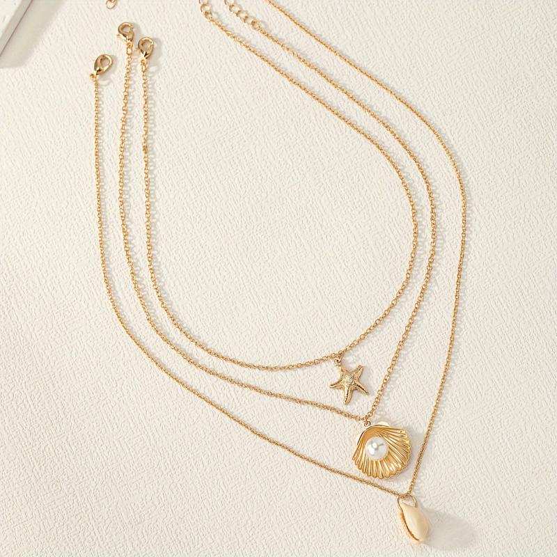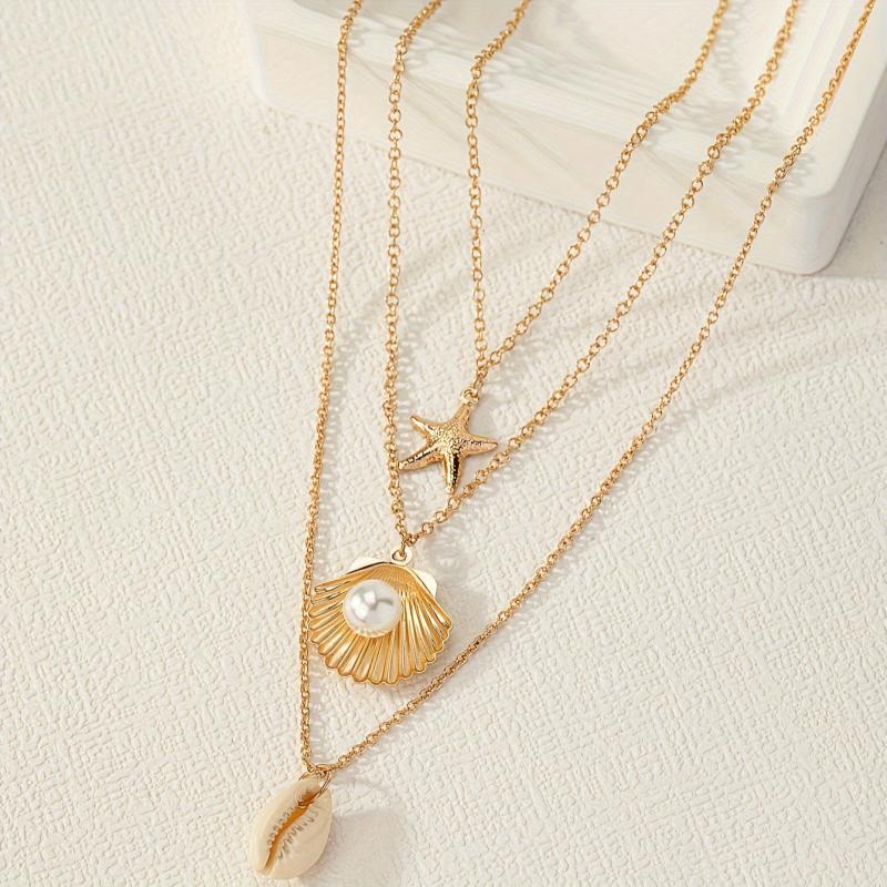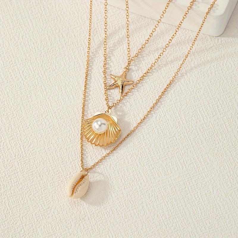 Elevate your summer style with this stunning three necklace set featuring shell and starfish pendants. Perfect for beach lovers and ocean enthusiasts!