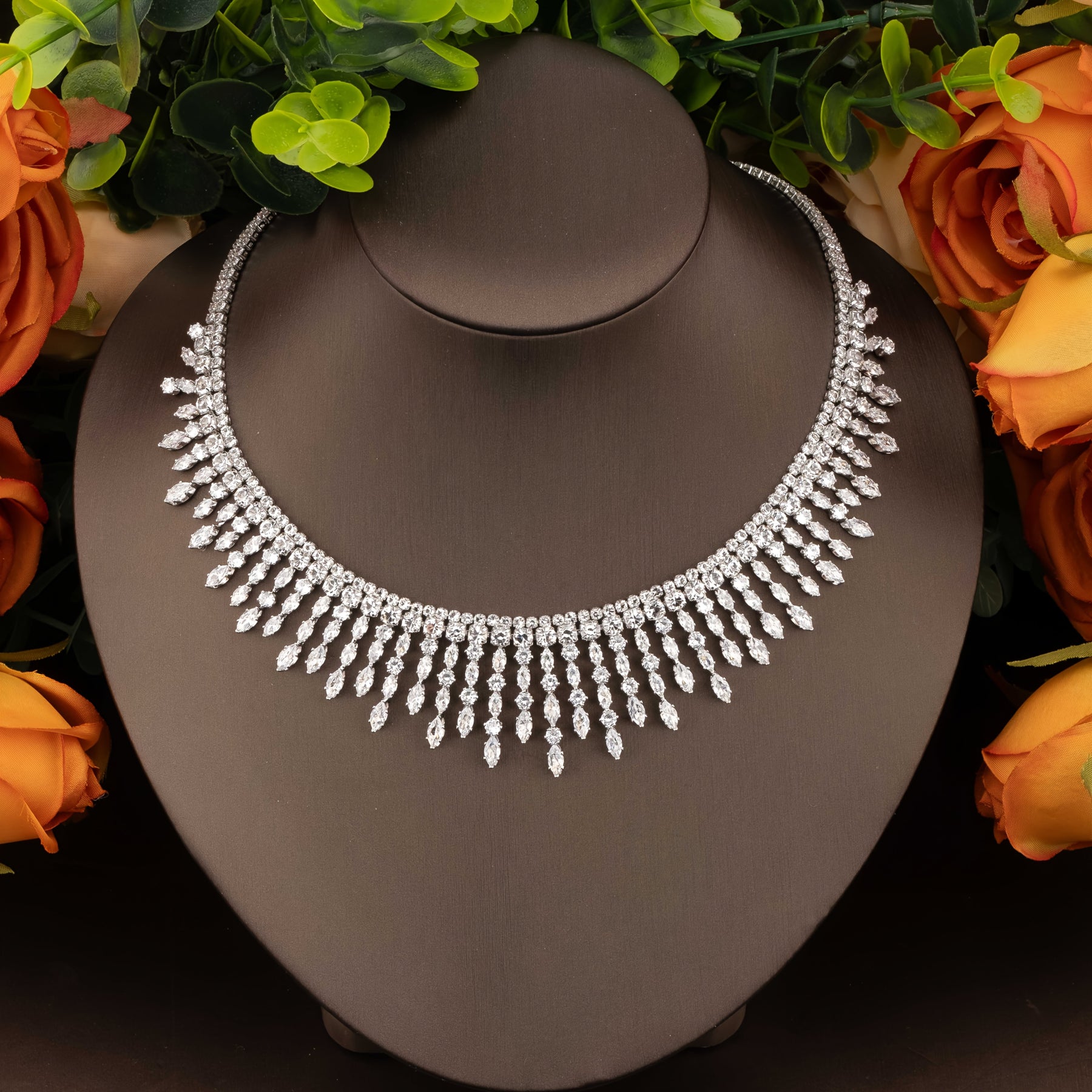 Elegant jewelry set featuring high-quality inlaid sparkling cubic zirconia stones. Perfect for parties and banquets.