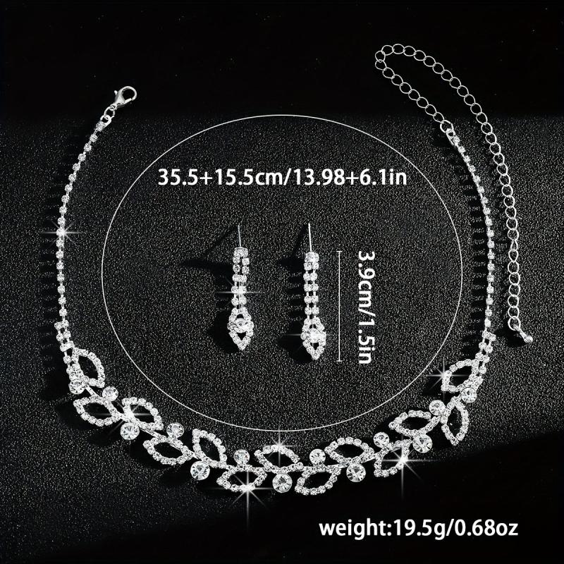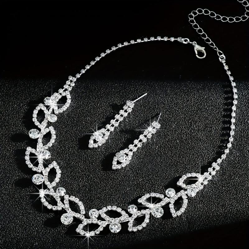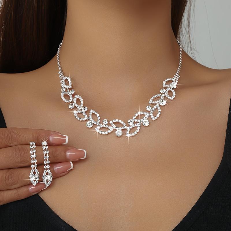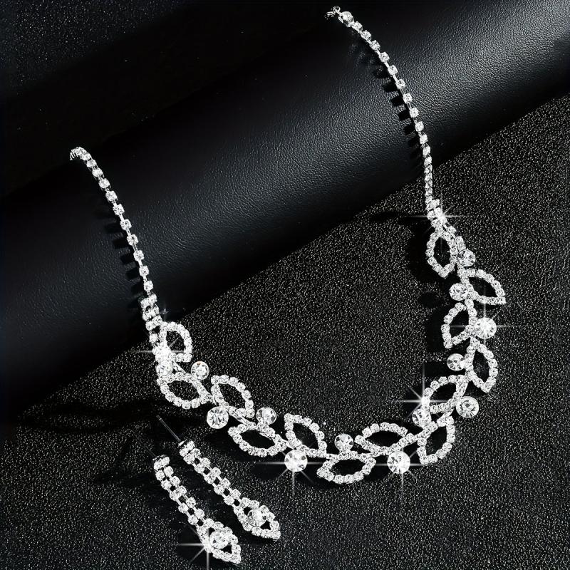 Elegant jewelry set featuring high-end sparkling rhinestones in a leaf design, perfect for brides, banquets, and special events.