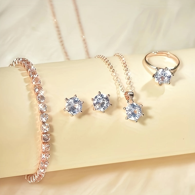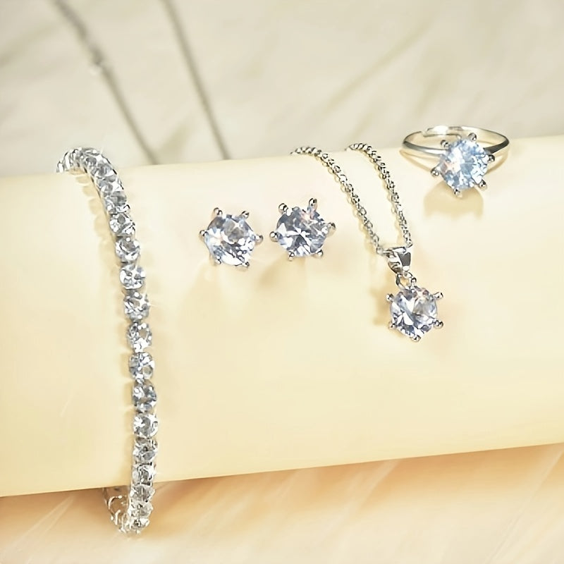 Elevate your style with this stunning jewelry set featuring sparkling synthetic zirconia. Perfect for daily wear or party occasions!