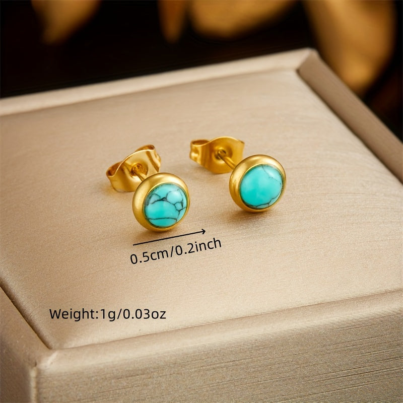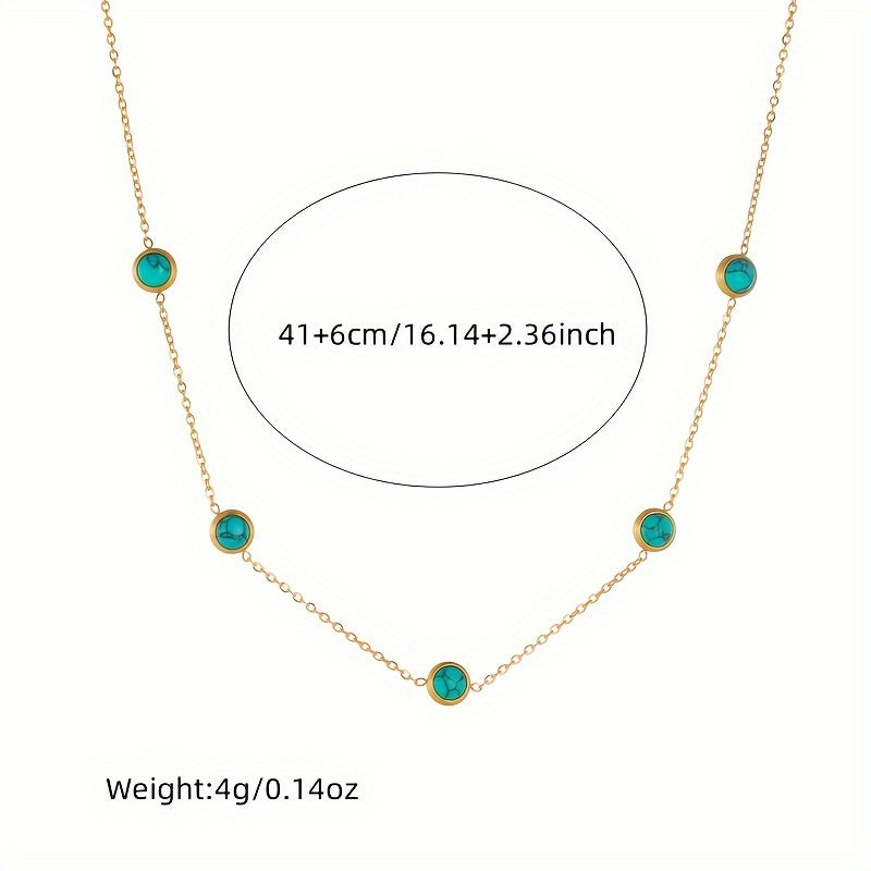Retro style stainless steel jewelry set perfect for daily wear or party occasions. Includes earrings and necklace with turquoise and golden accents.