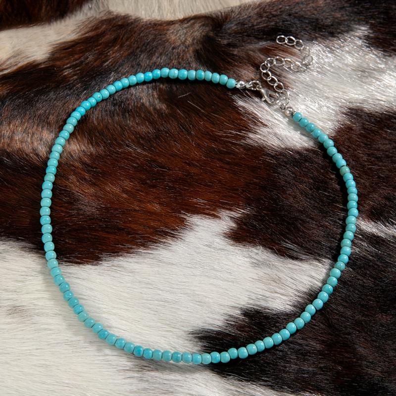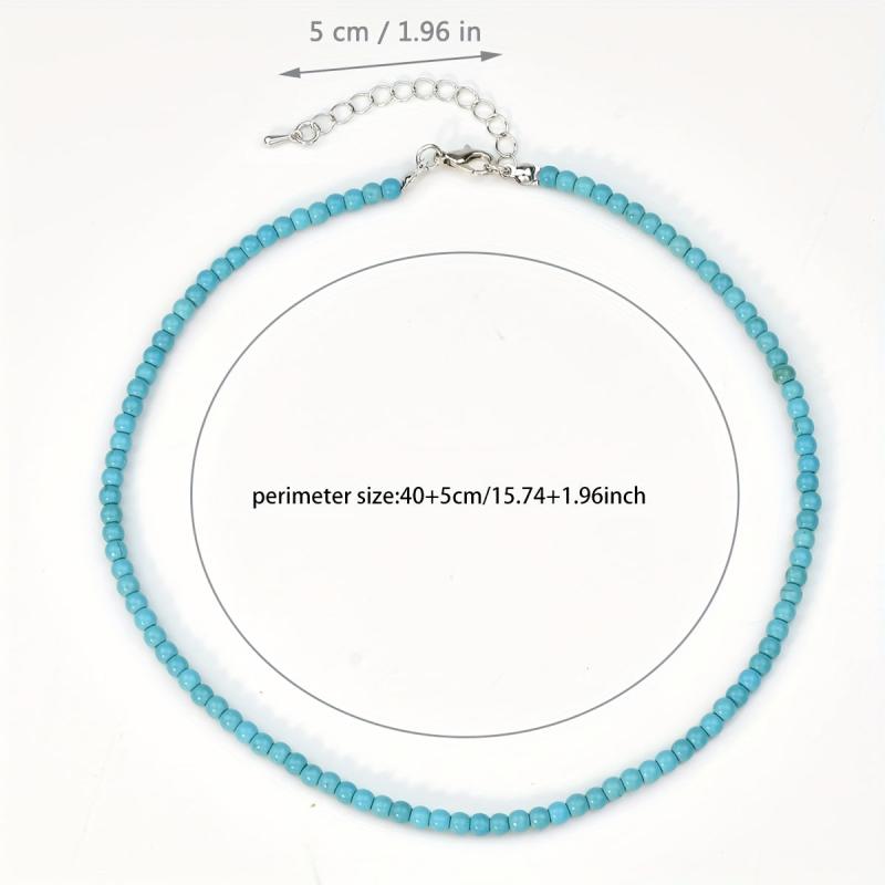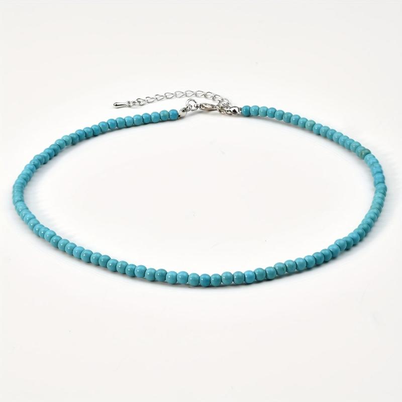 This necklace features natural stone turquoise round beads that are perfect for minimalist stacking. It's a great birthday gift for friends who love bohemian style jewelry.